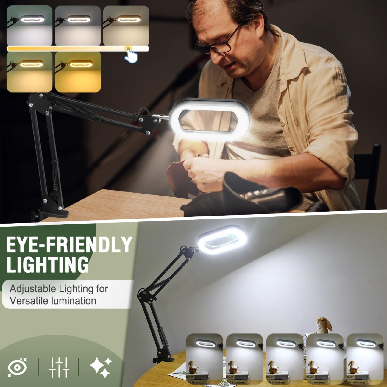 10X Rectangle Magnifying Glass with Light and Stand, 5 Color Modes Stepless Dimm