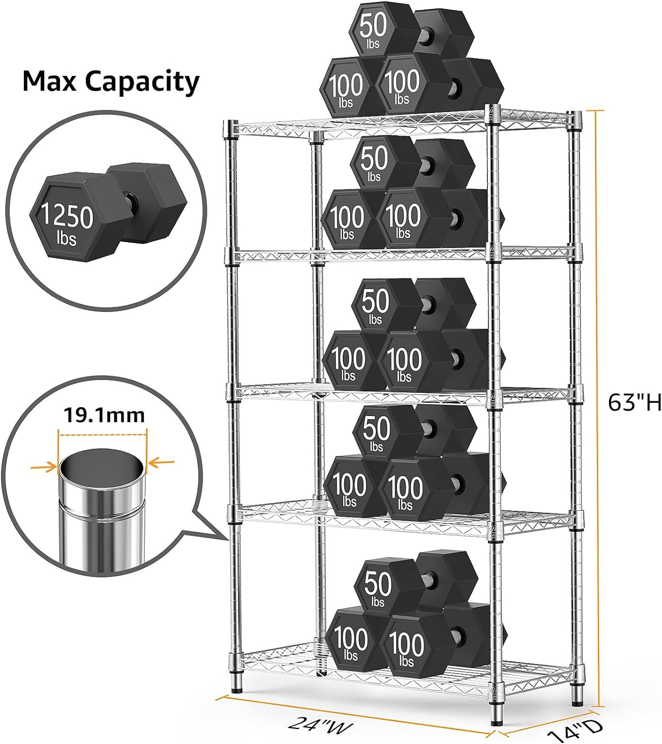 MZG 1250 Lbs Steel Heavy Duty 5-Tier Utility Shelving Unit Steel Organizer Wire