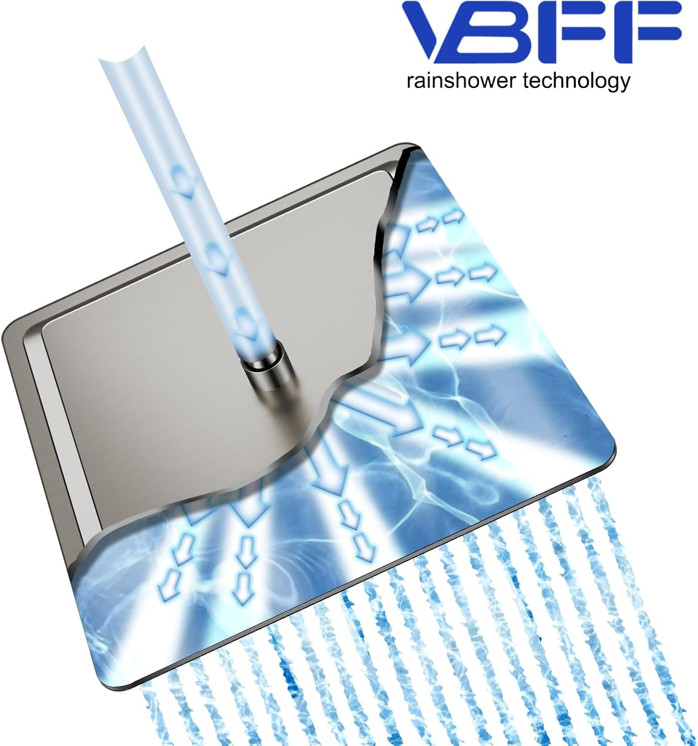 16 Brushed Nickel Rain Shower Head, 1.8 GPM, Square Design, Luxurious Experienc