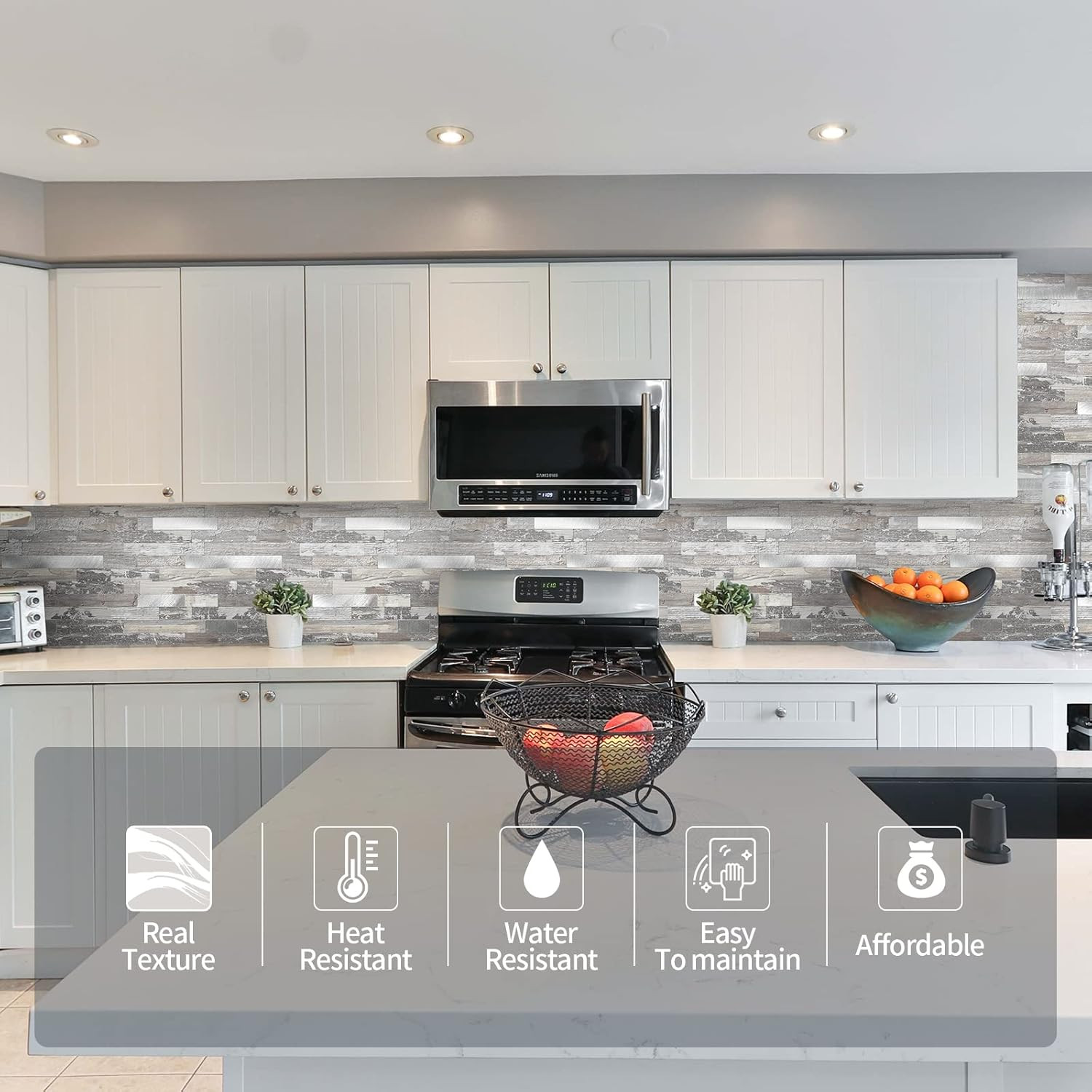 как выглядит Light Rustic Peel and Stick Wood Metal Backsplash Tiles - 10 Sheets, 12"x12 фото
