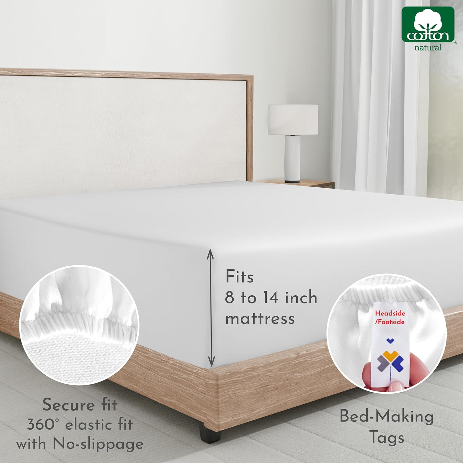 как выглядит King Size Fitted Sheets 2-Pack - Soft 100 Cotton Deep Pocket White фото