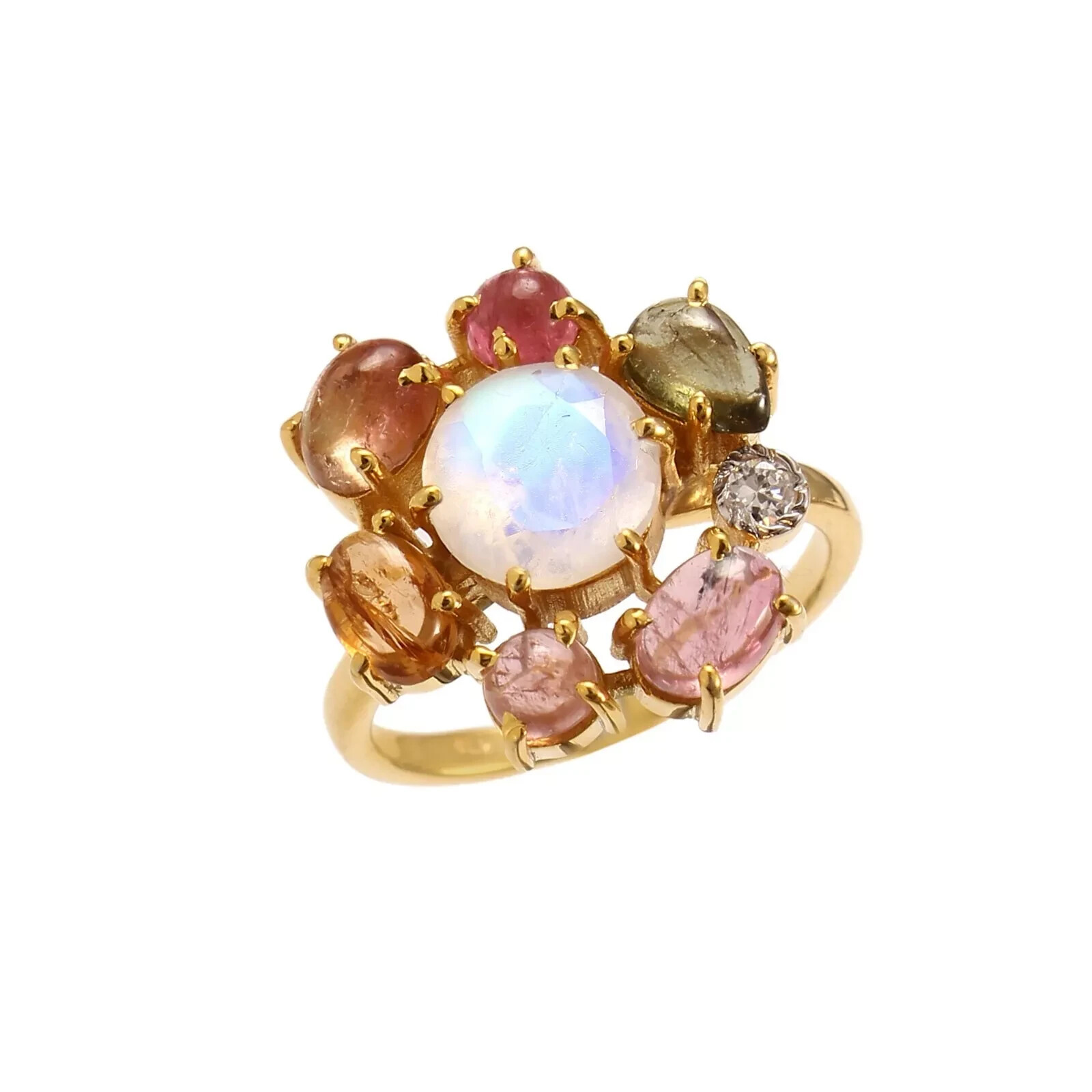 как выглядит Natural Moonstone Multi Tourmaline 925 Sterling Silver Gold Plated Ring фото