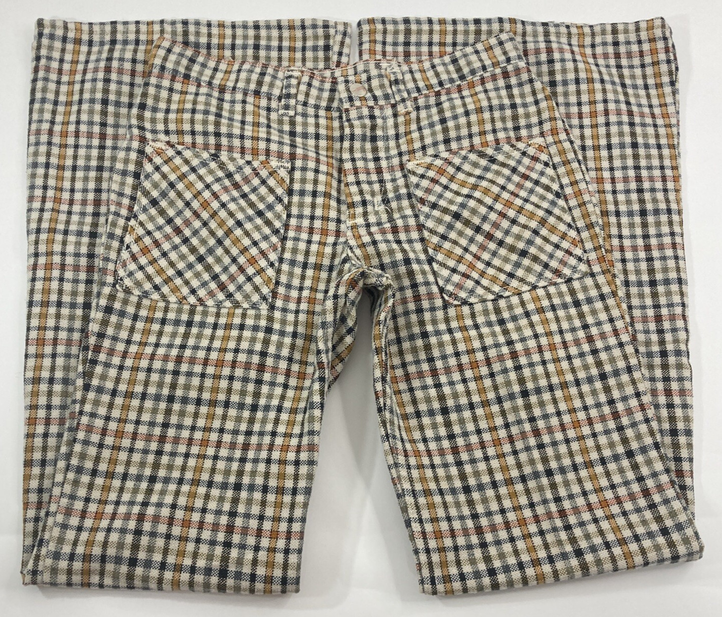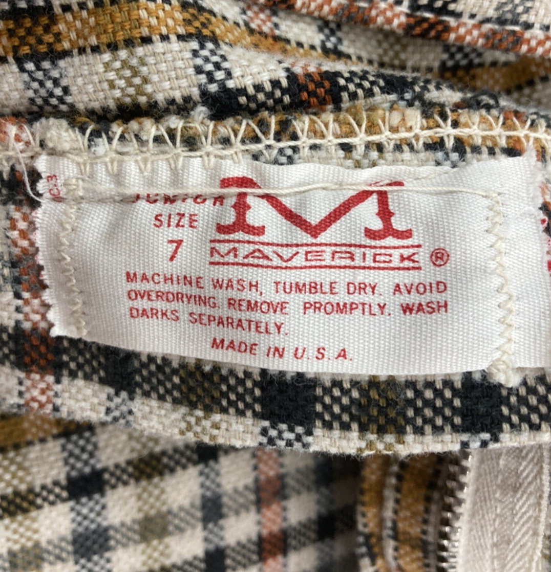 Vintage 70s Maverick Womens Sz 7 27x30 Tan Checked Plaid Flare Leg Retro Pants