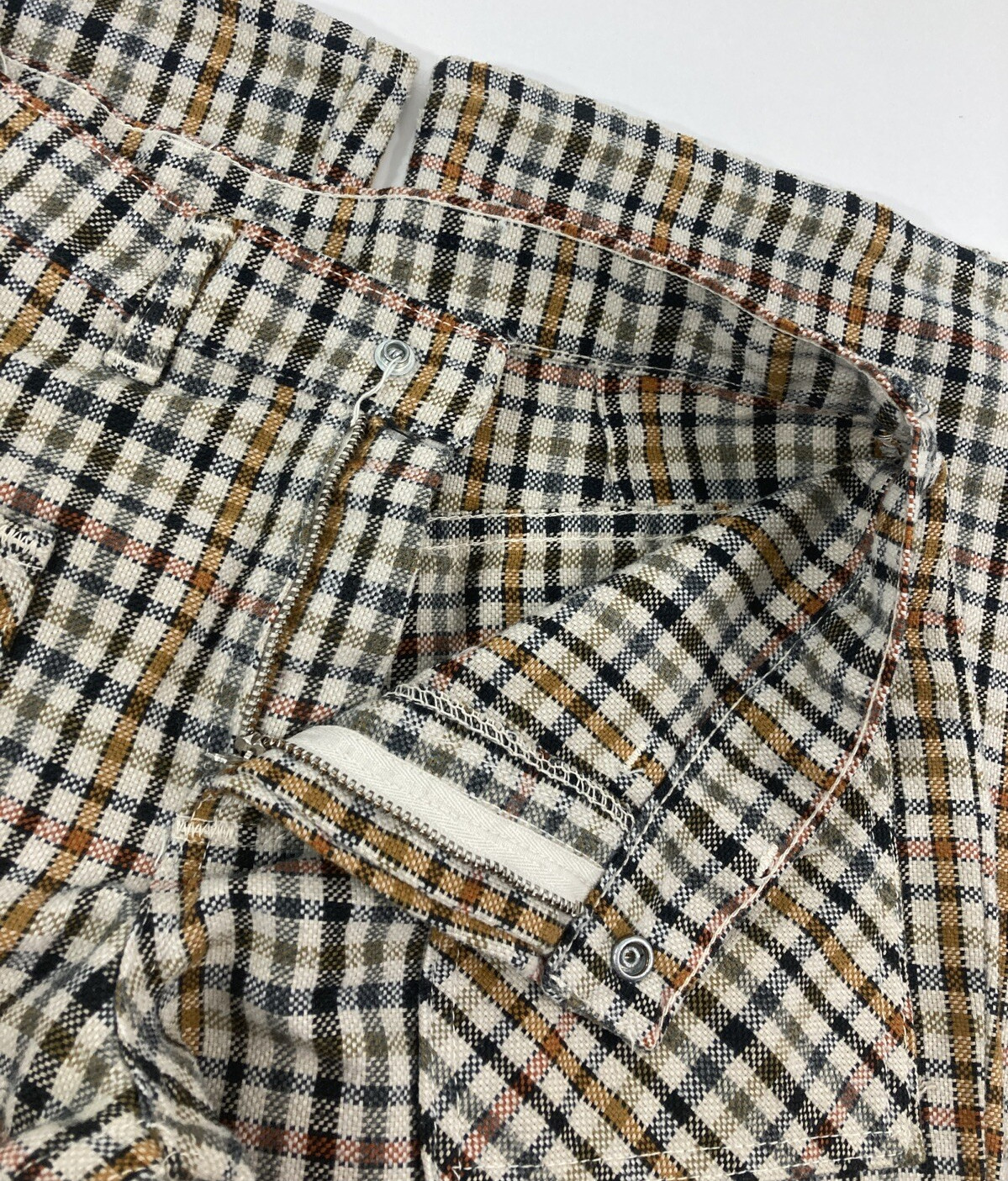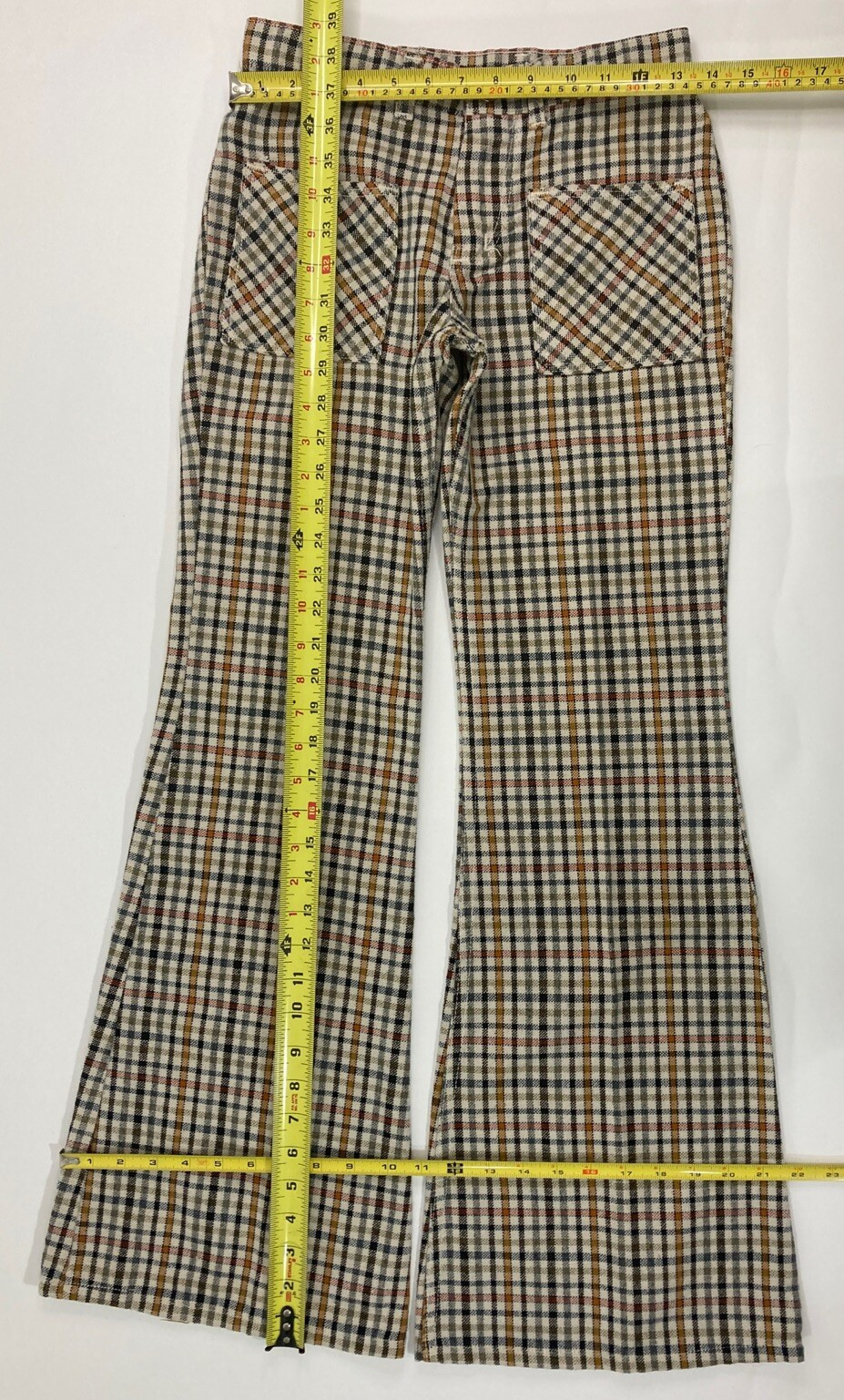 как выглядит Vintage 70s Maverick Womens Sz 7 27x30 Tan Checked Plaid Flare Leg Retro Pants фото