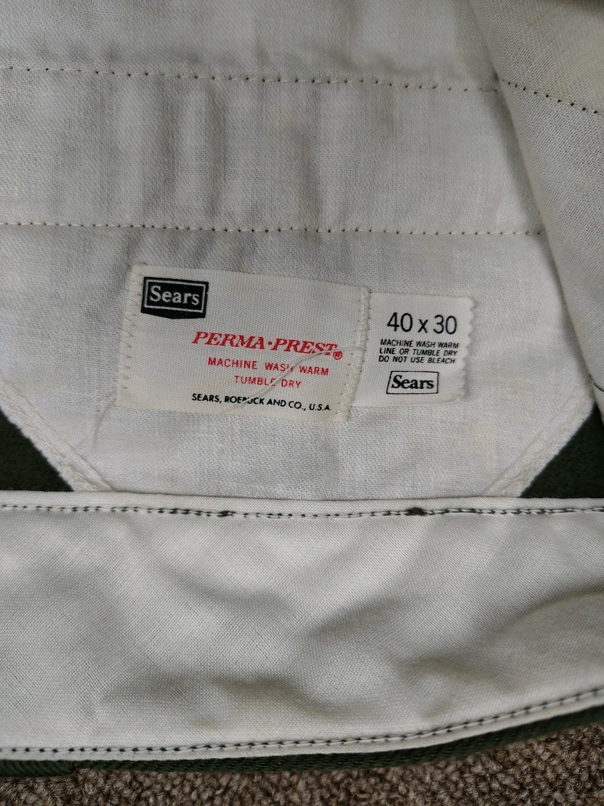 как выглядит Vintage SEARS PERMA-PRESS Straight Leg Pants Mens 40x30 Green Twill Classic фото
