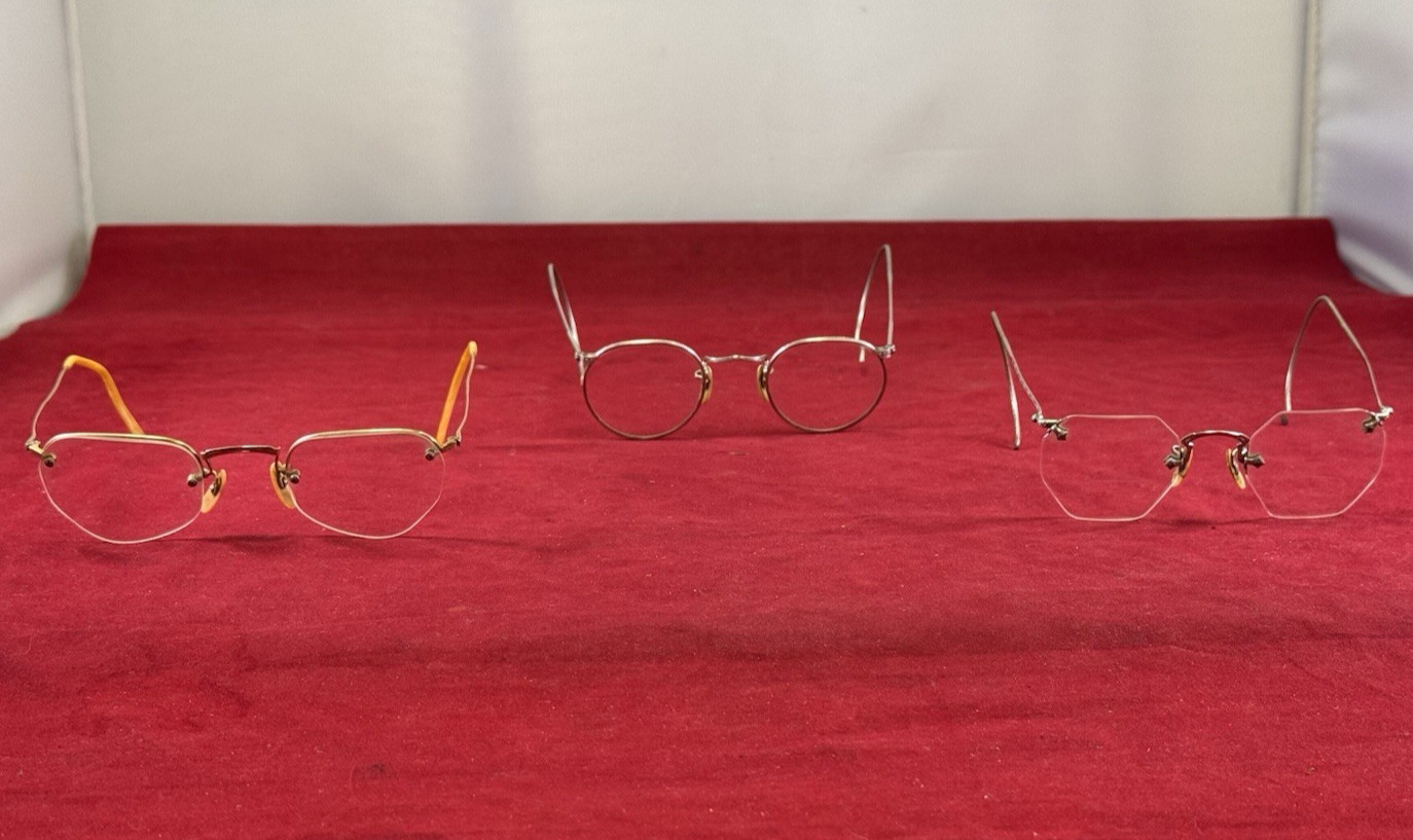 как выглядит 3 Vintage Gold Filled Glasses Parker Jones, Spectors, Fritz Hawley Cases фото