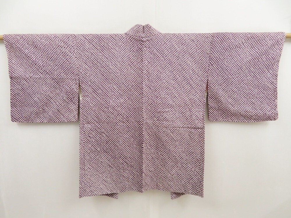 • 5224T05z570 Vintage Japanese Kimono Silk SHIBORI HAORI Purple
