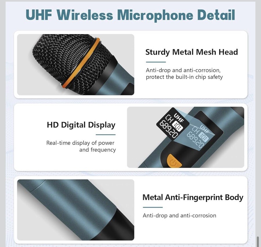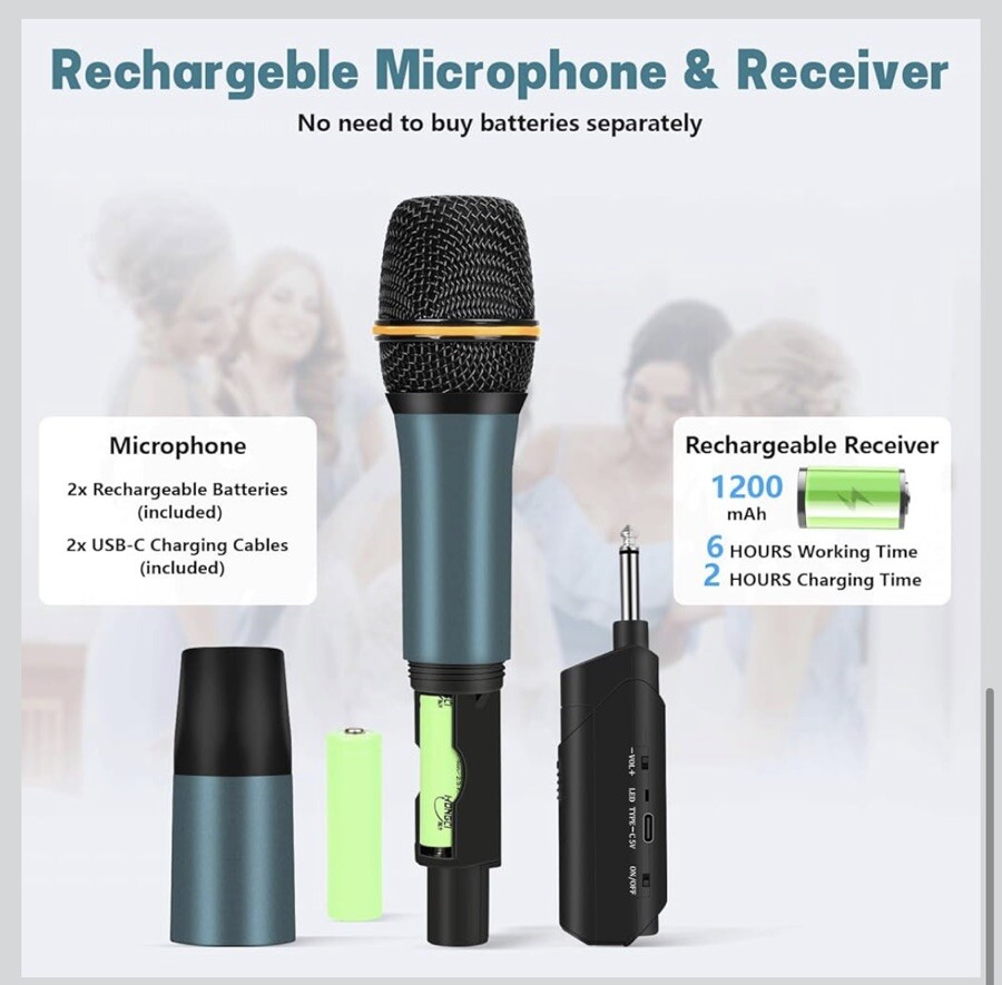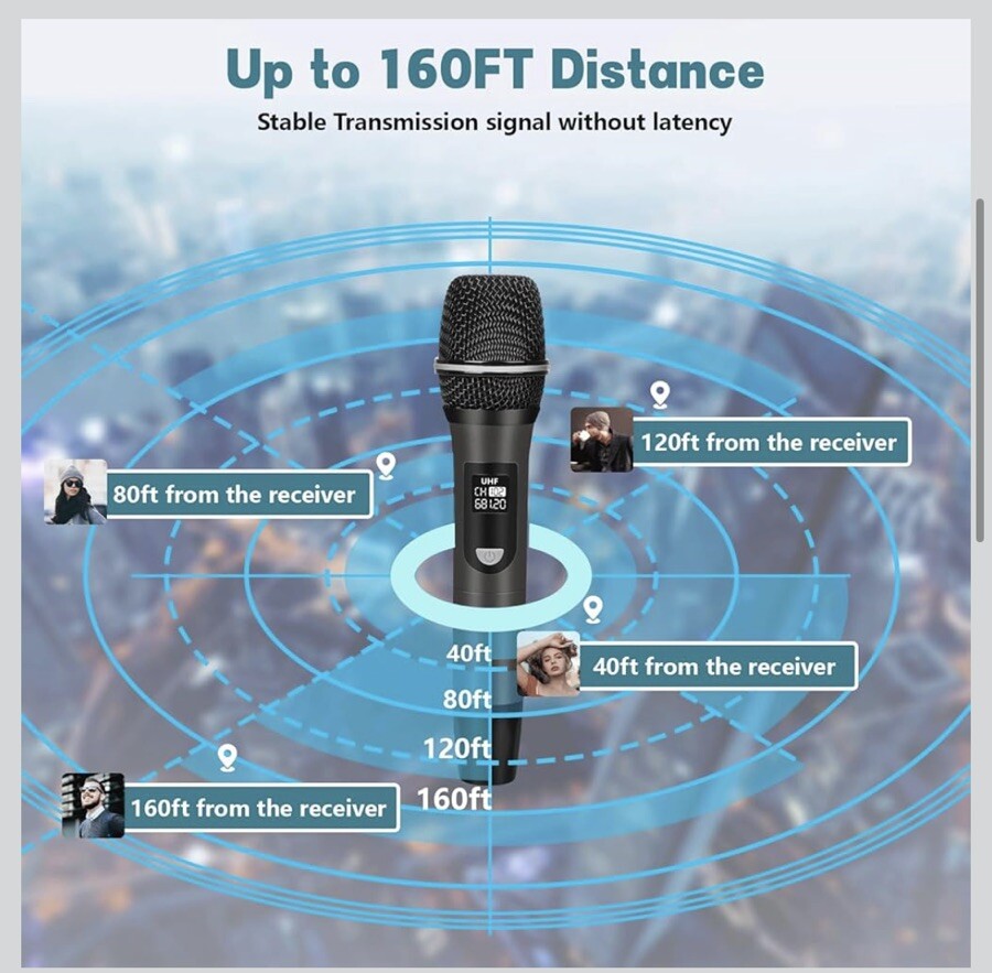 Handheld Wireless Microphone System With 2 Mics And Receiver With 160 Ft Range