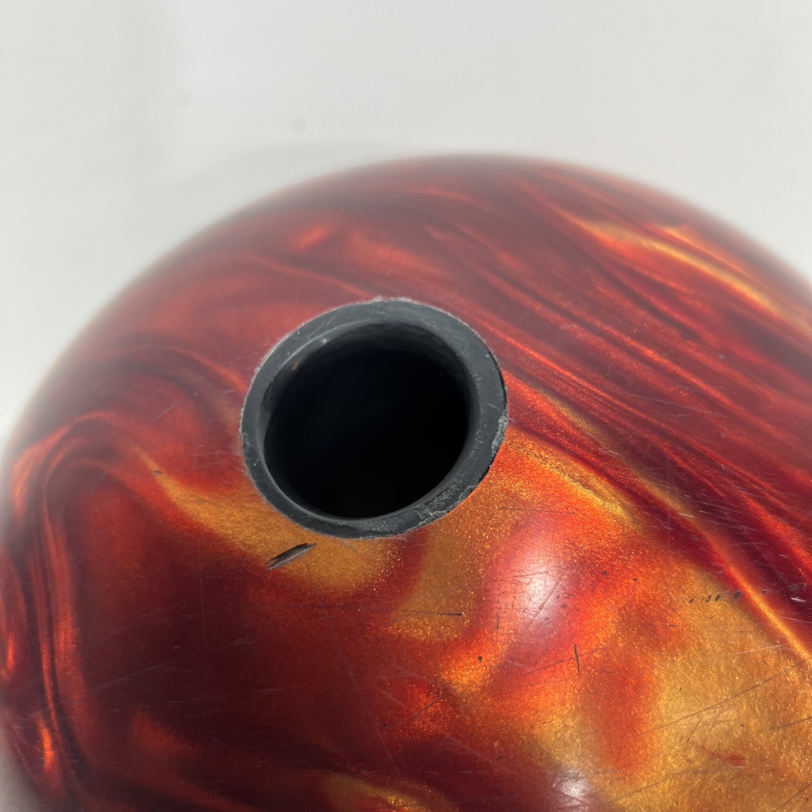 Brunswick Strike King Beautiful Red Gold Swirl Drilled Used 11 lb 11 oz SEE