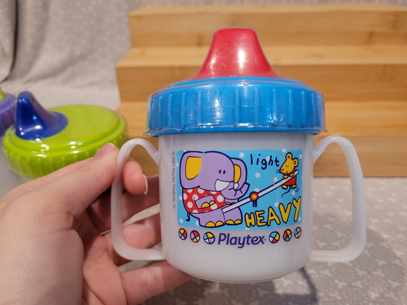 2001 Playtex Sippy Cup No Spill Handles Plastic Opposites Animals Lot Of 4 NOS