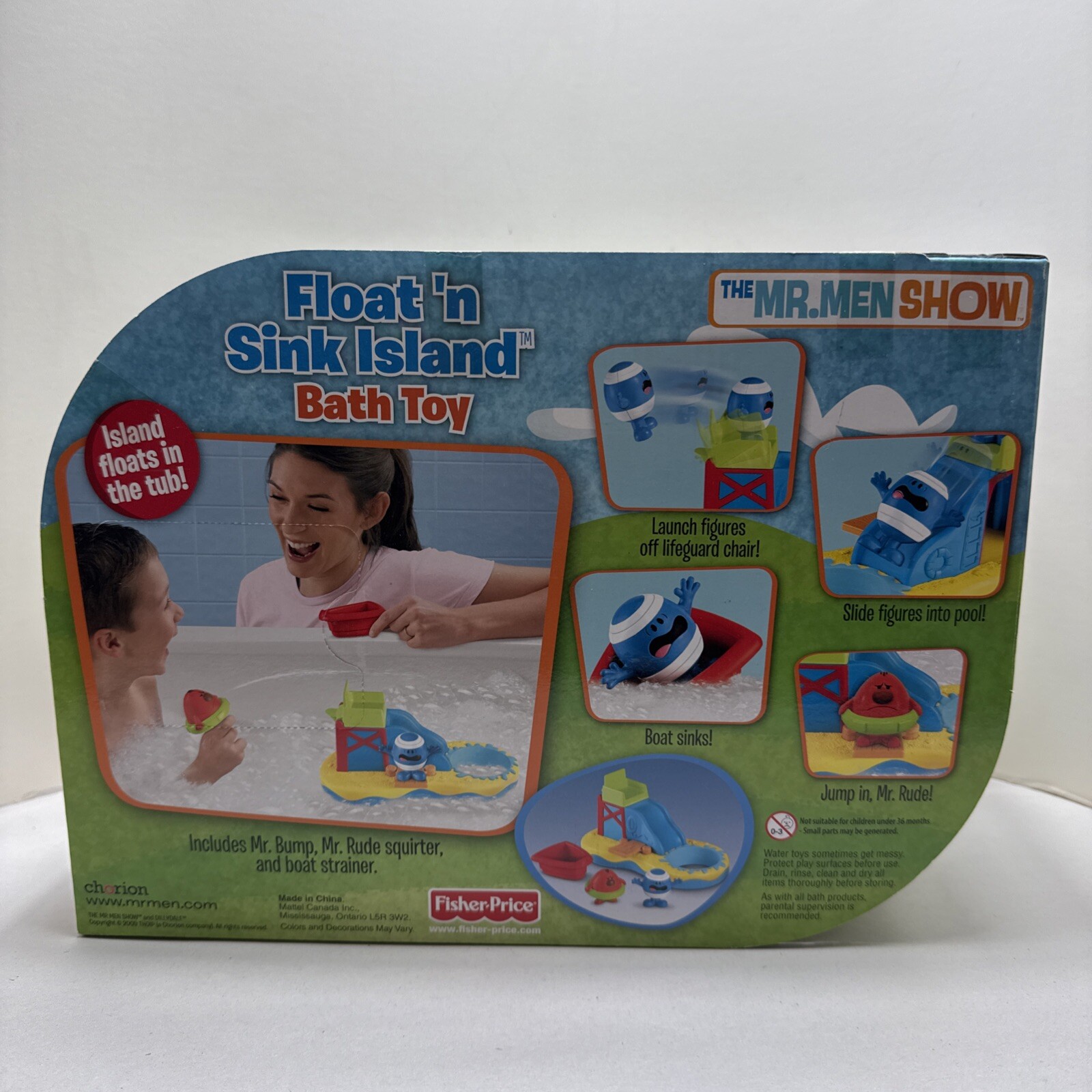 2009 Fisher Price Mr. Men Little Miss Mr. Bump Rude Float N Sink Island Bath Toy