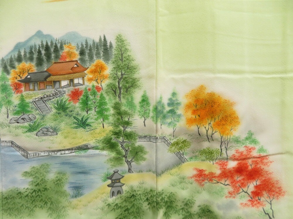 5228T05z630 Vintage Japanese Kimono Silk HAORI Scenery Light olive