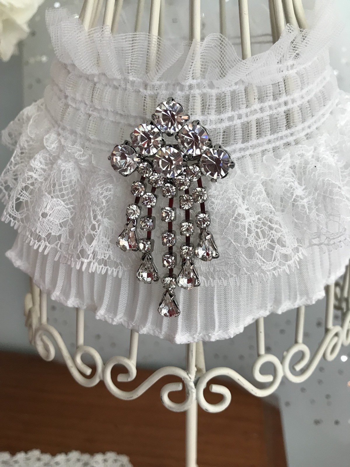 AU Ivory Gatsby Style Lace Wedding Day Garter bling feature Plus SIZES