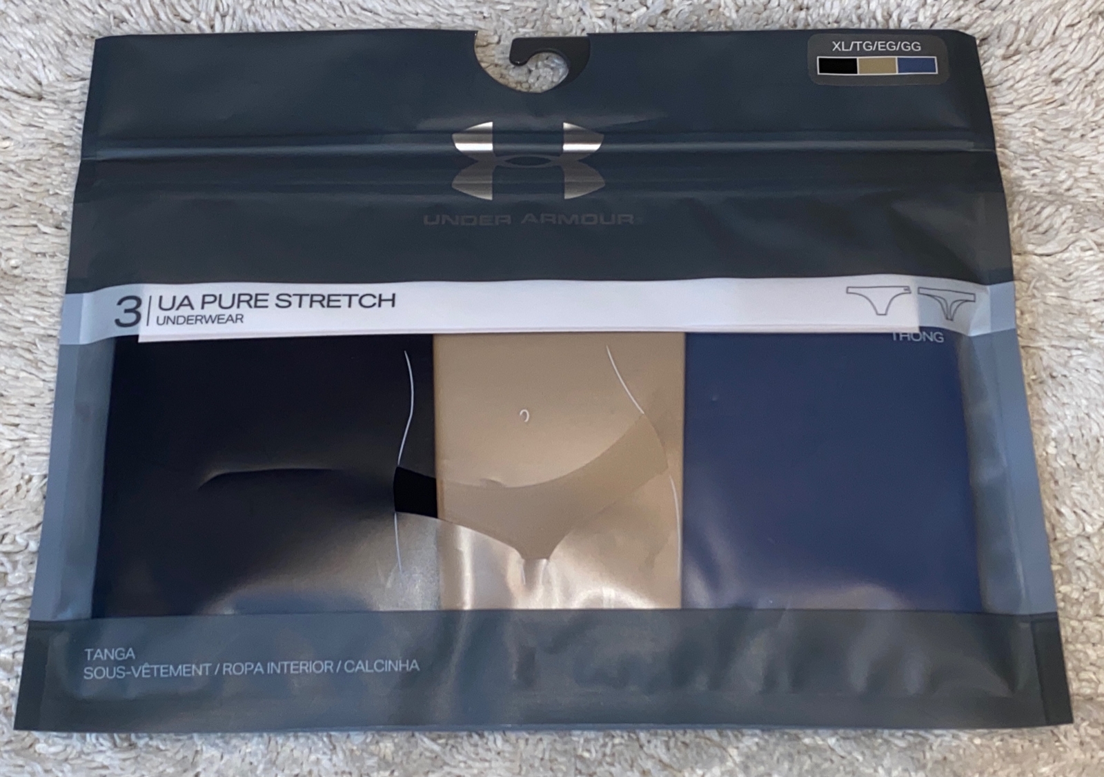UNDER ARMOUR UA Pure Stretch Black Nude Mineral Blue 3 Pk Thong Panty Women XL 8