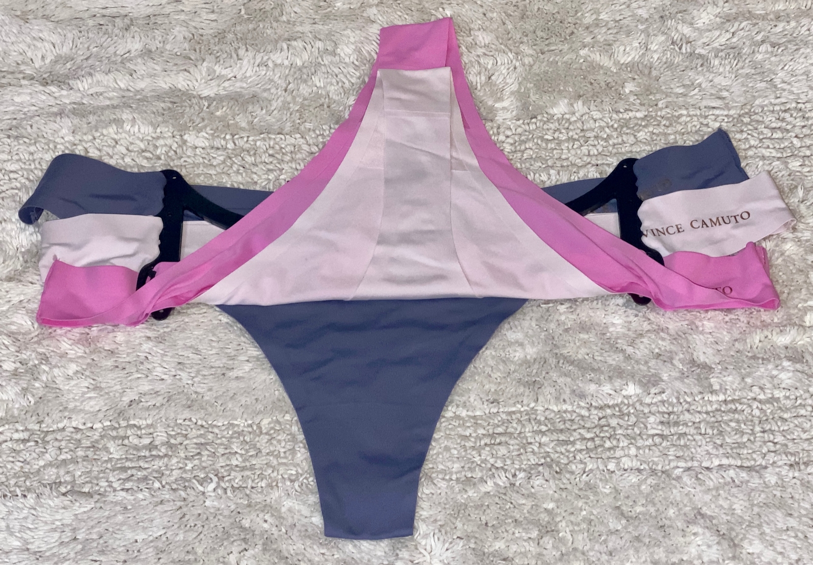 как выглядит VINCE CAMUTO 3 Pack Pink Blue Light Pink No Show Thong Panty Womens Sz L 7 XL 8 фото