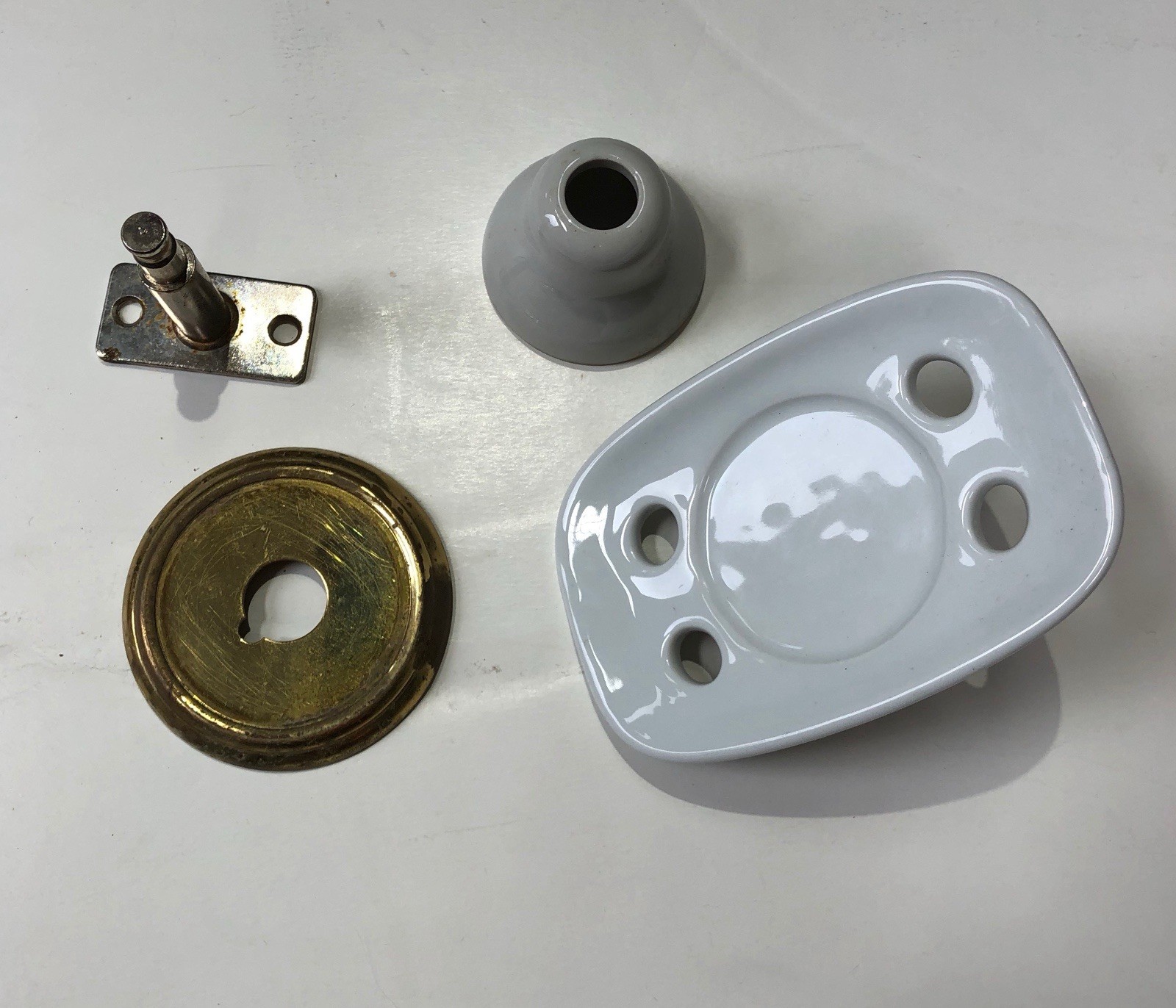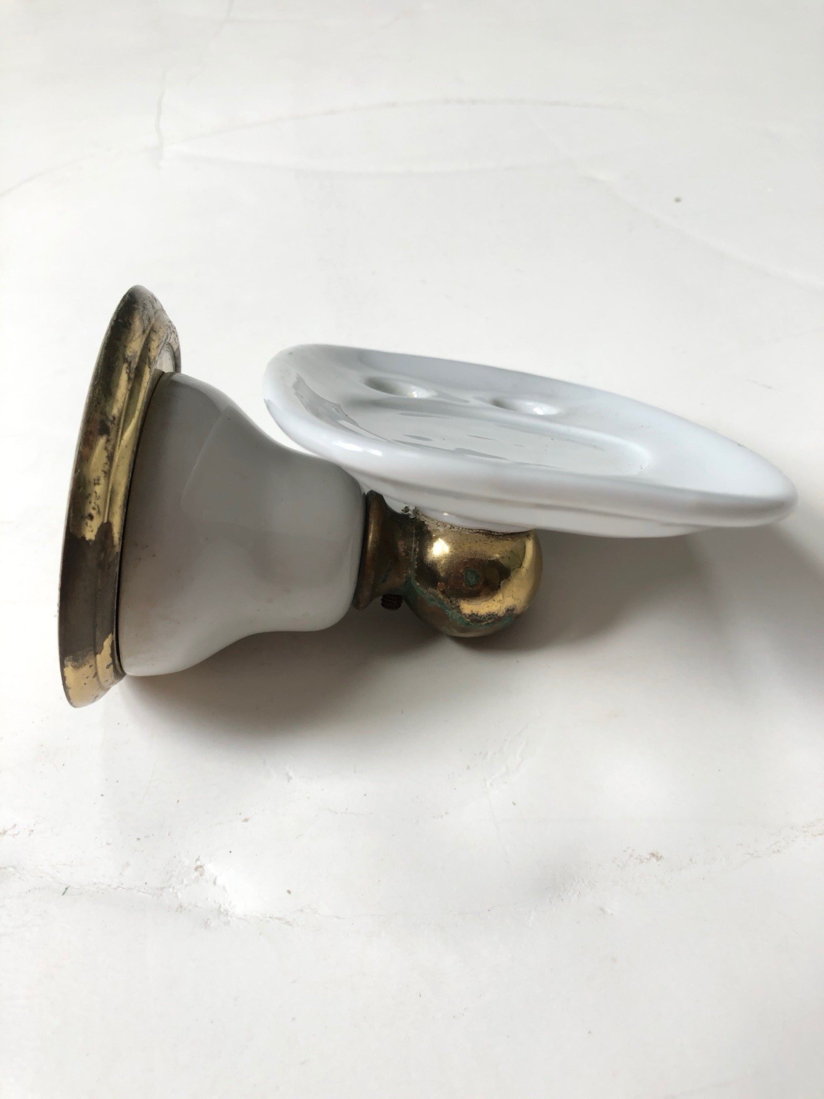 VINTAGE WALL-MOUNT TOOTHBRUSH HOLDER PORCELAIN BRASS FOR 4