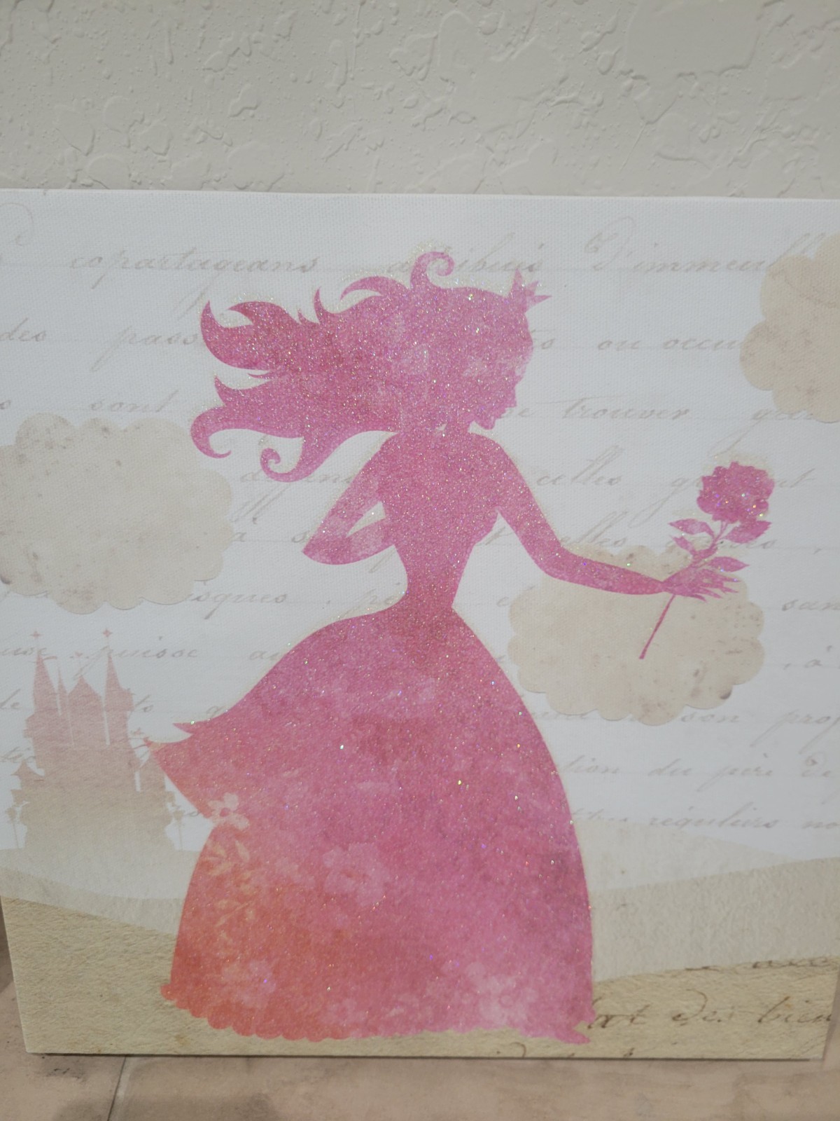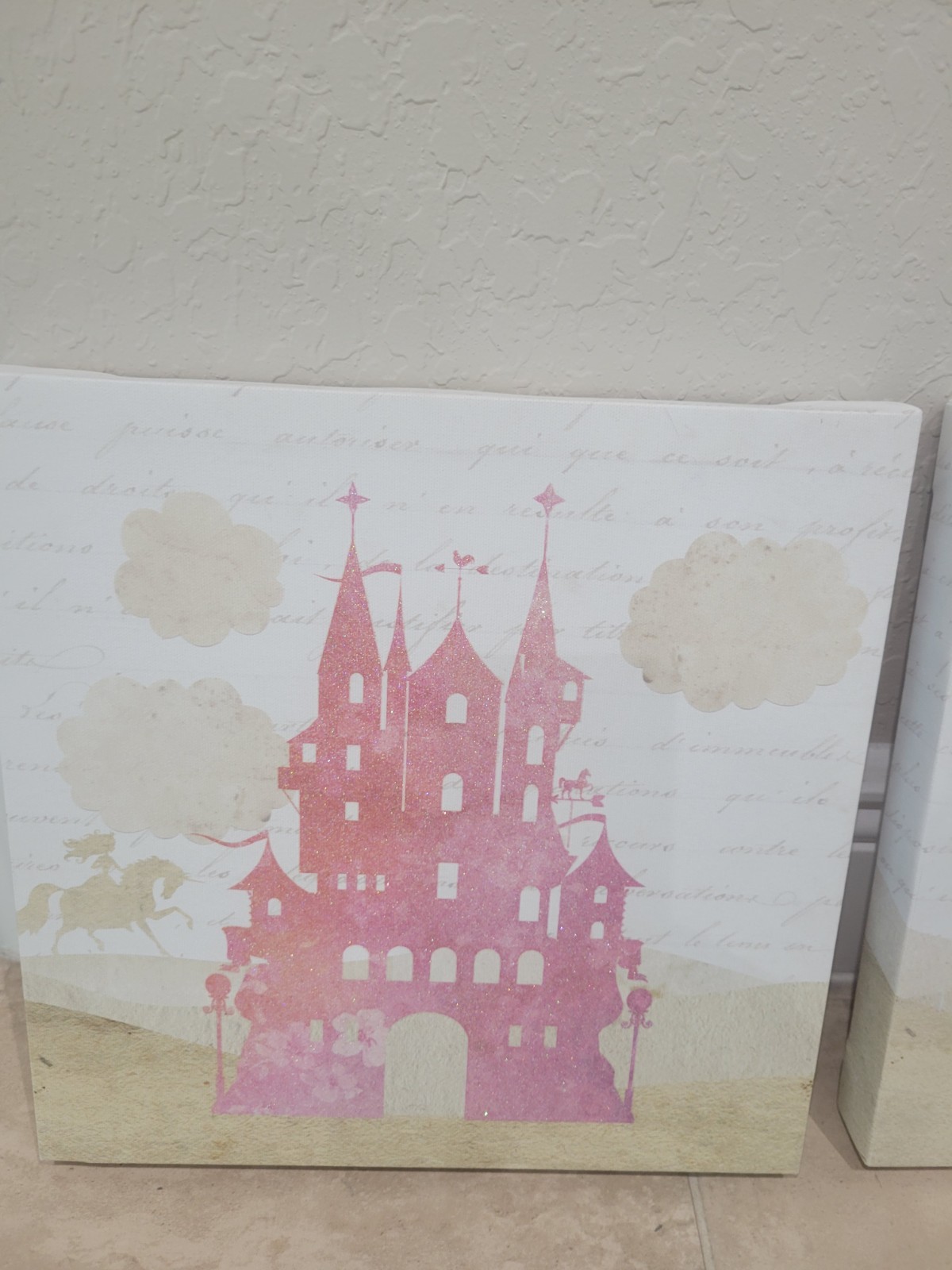 Unicorn Princess Castle Canvas Art Set Pink Gold Shiny Room Decor
