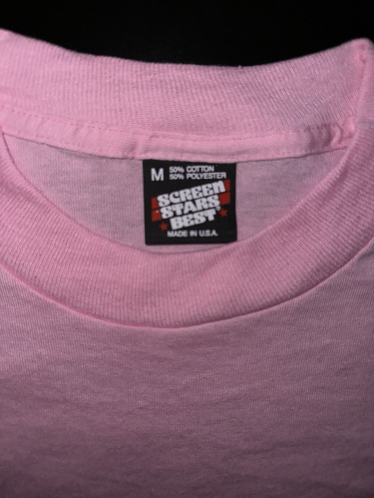 как выглядит Vintage NOS Blank Medium Pink Screen Stars Best, Single Stitch Made in USA. фото