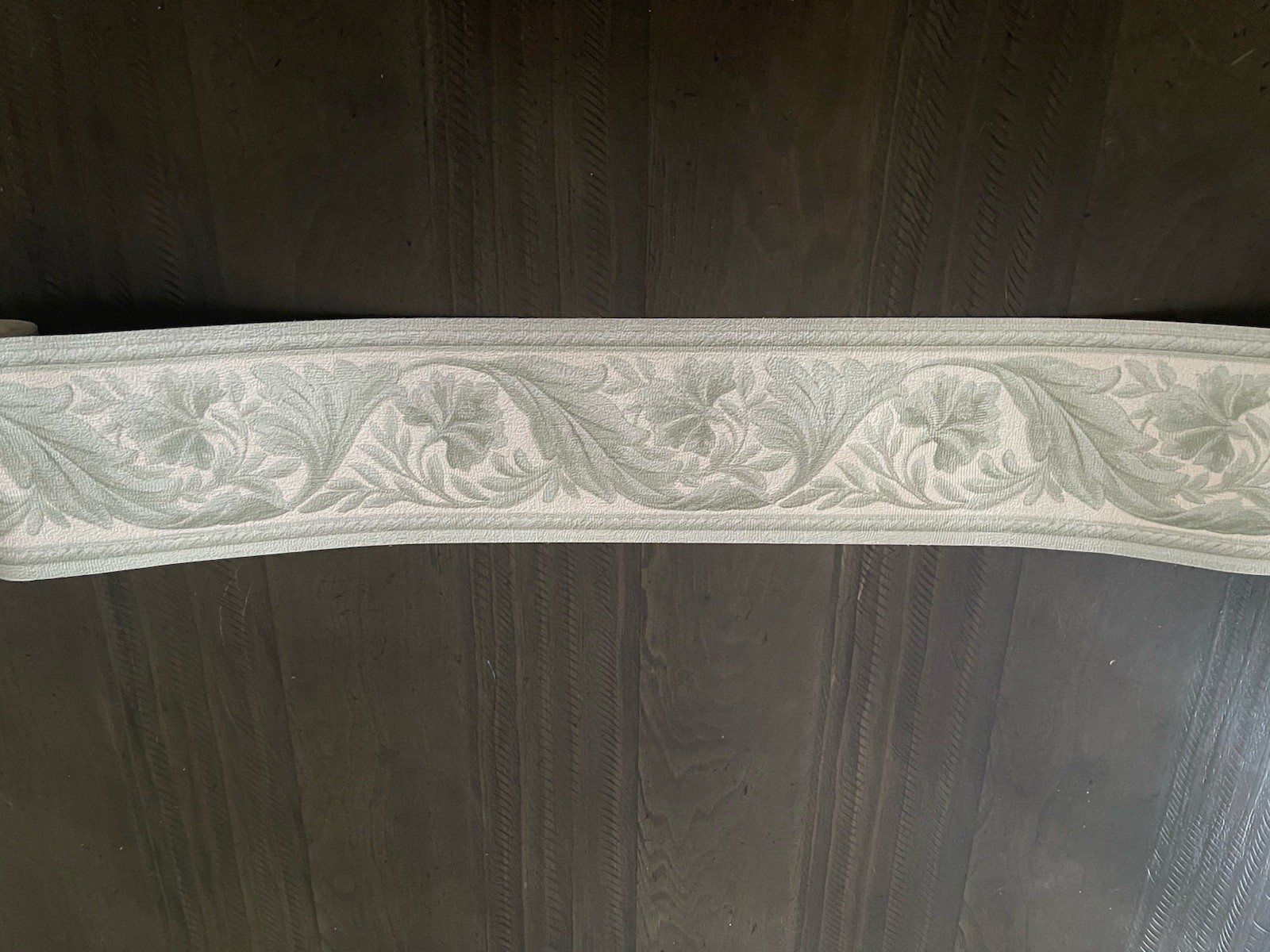 3.5 rolls Textured Victorian Floral Green and Cream Color Wallpaper Border