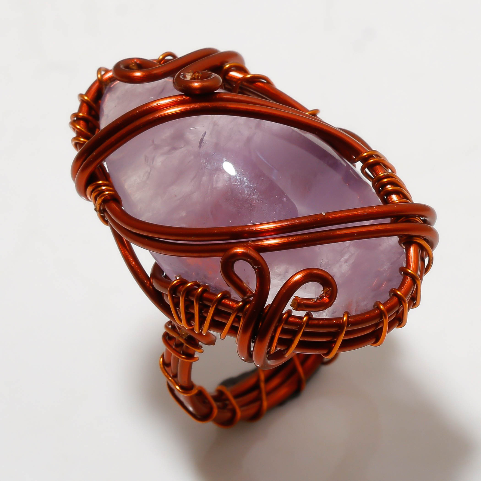 как выглядит African Amethyst Gemstone Copper Ring Handcrafted Wire Wrap Ethnic Jewelry 7" p7 фото