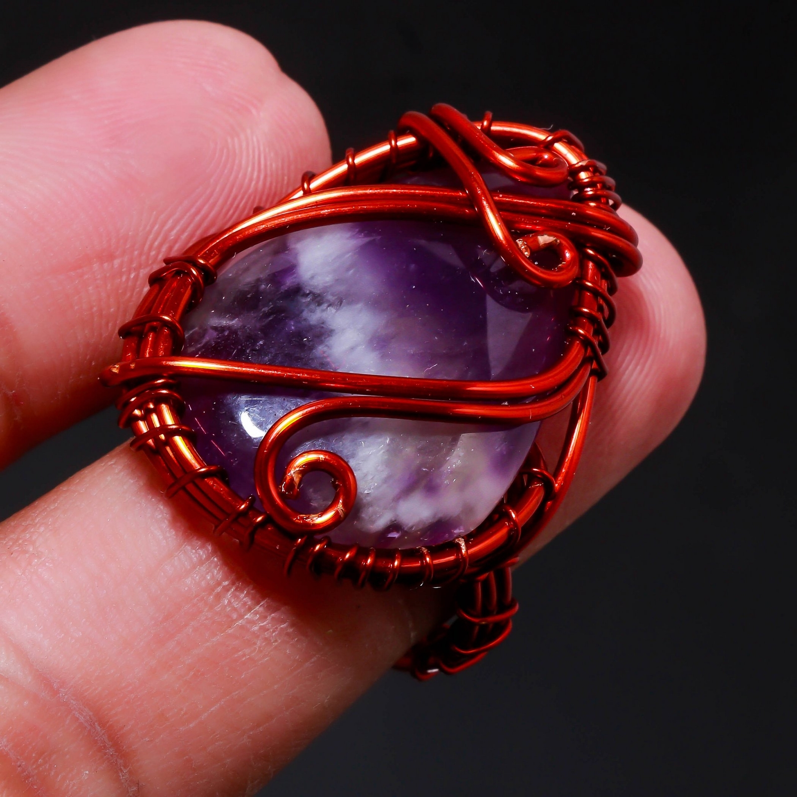 как выглядит African Amethyst Gemstone Copper Ring Handcrafted Wire Wrap Jewelry 8.25" G490 фото