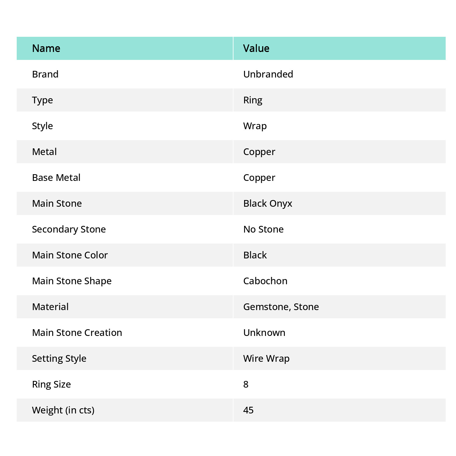 как выглядит Black Onyx Gemstone Copper Ring Handcrafted Wire Wrap Very Pretty Jewelry 8" h10 фото
