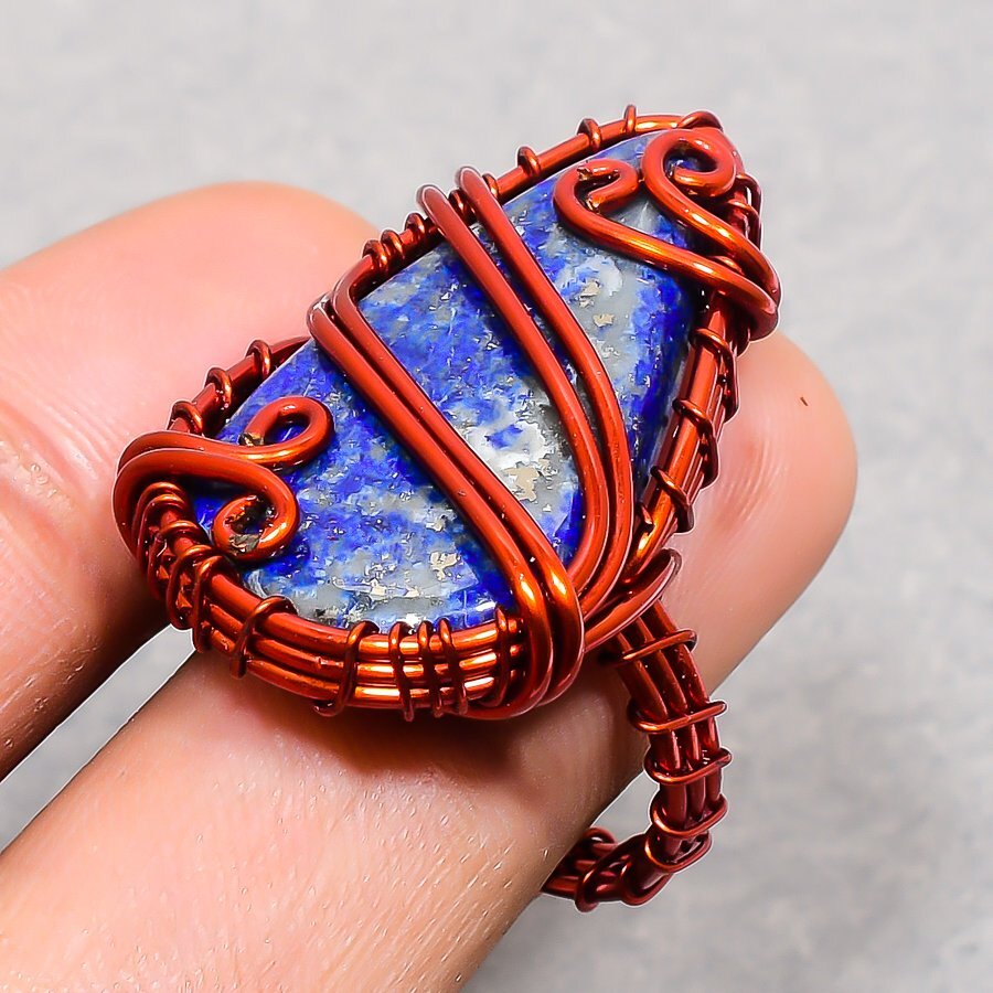 как выглядит Lapis Lazuli Gemstone Copper Ring Handcrafted Wire Wrap Beautiful Jewelry 8" m72 фото