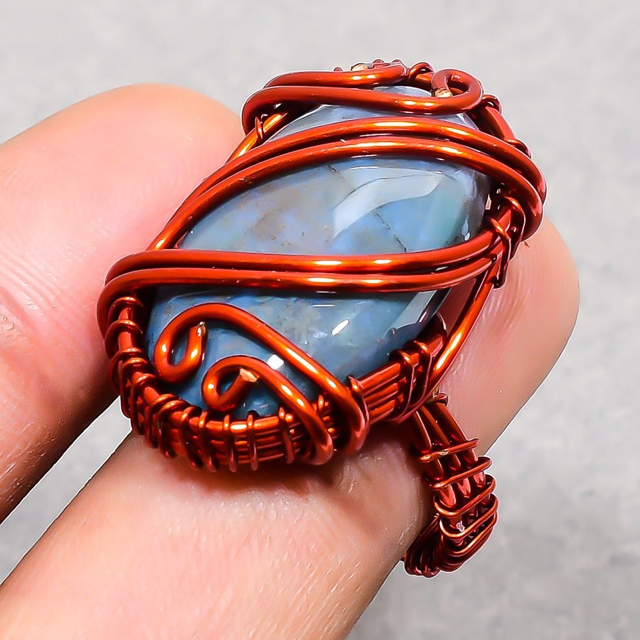 как выглядит Moss Agate Gemstone Copper Ring Handcrafted Wire Wrap Very Pretty Jewelry 7" P96 фото