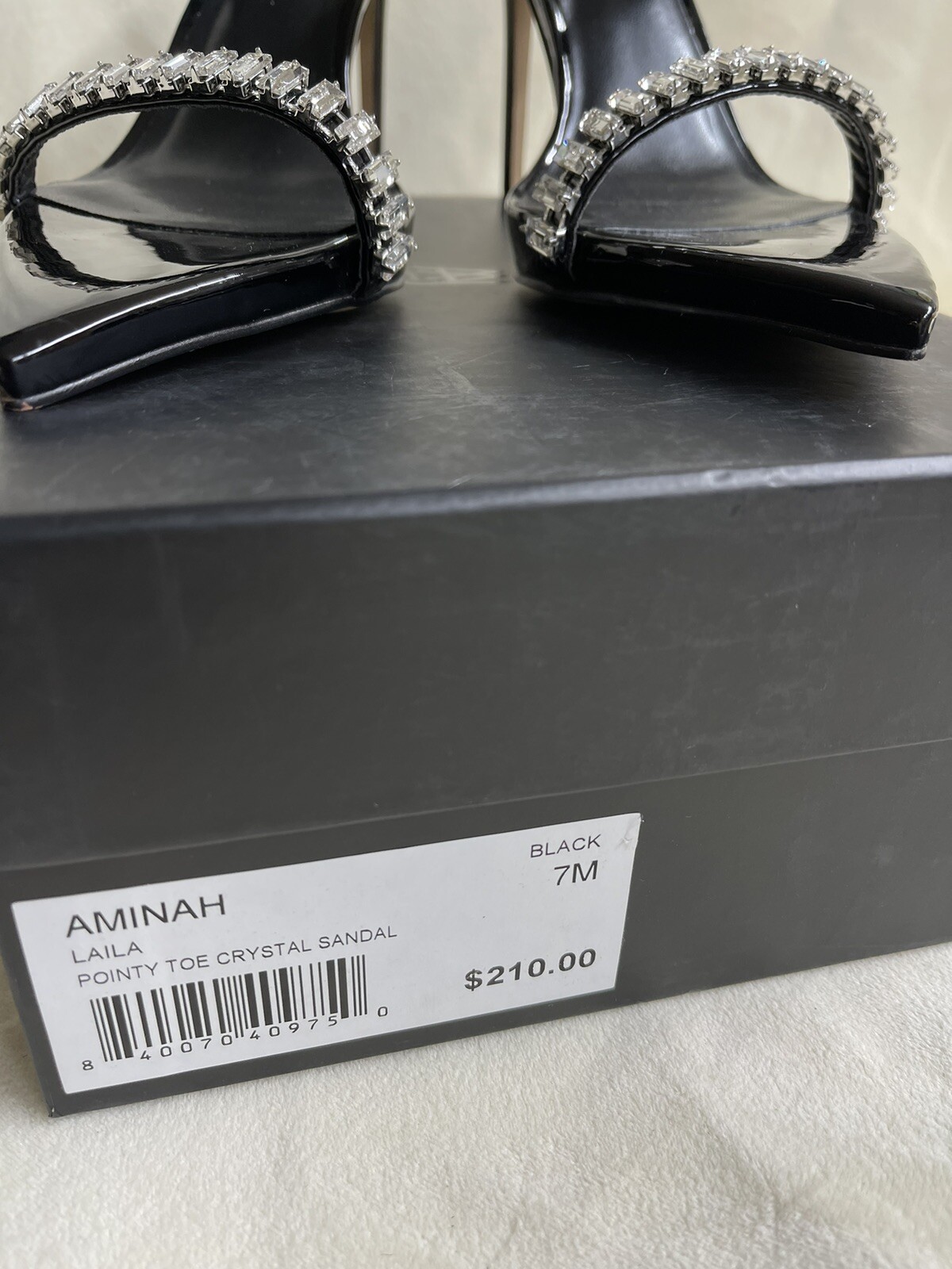 AAJ By Aminah Women's Laila Crystal Black Sandals - Silver 7 M Org. 210