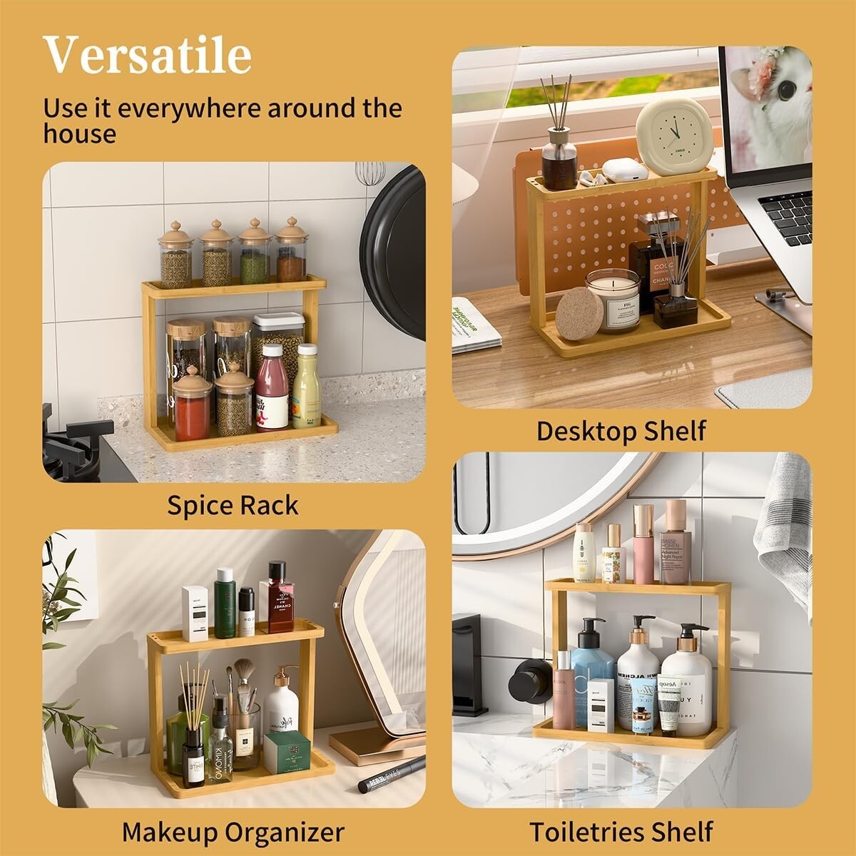 Bamboo Bathroom Organizer Countertop,Vanity Storage Shelf 10.24x8.46x5.12