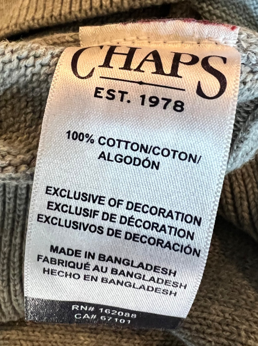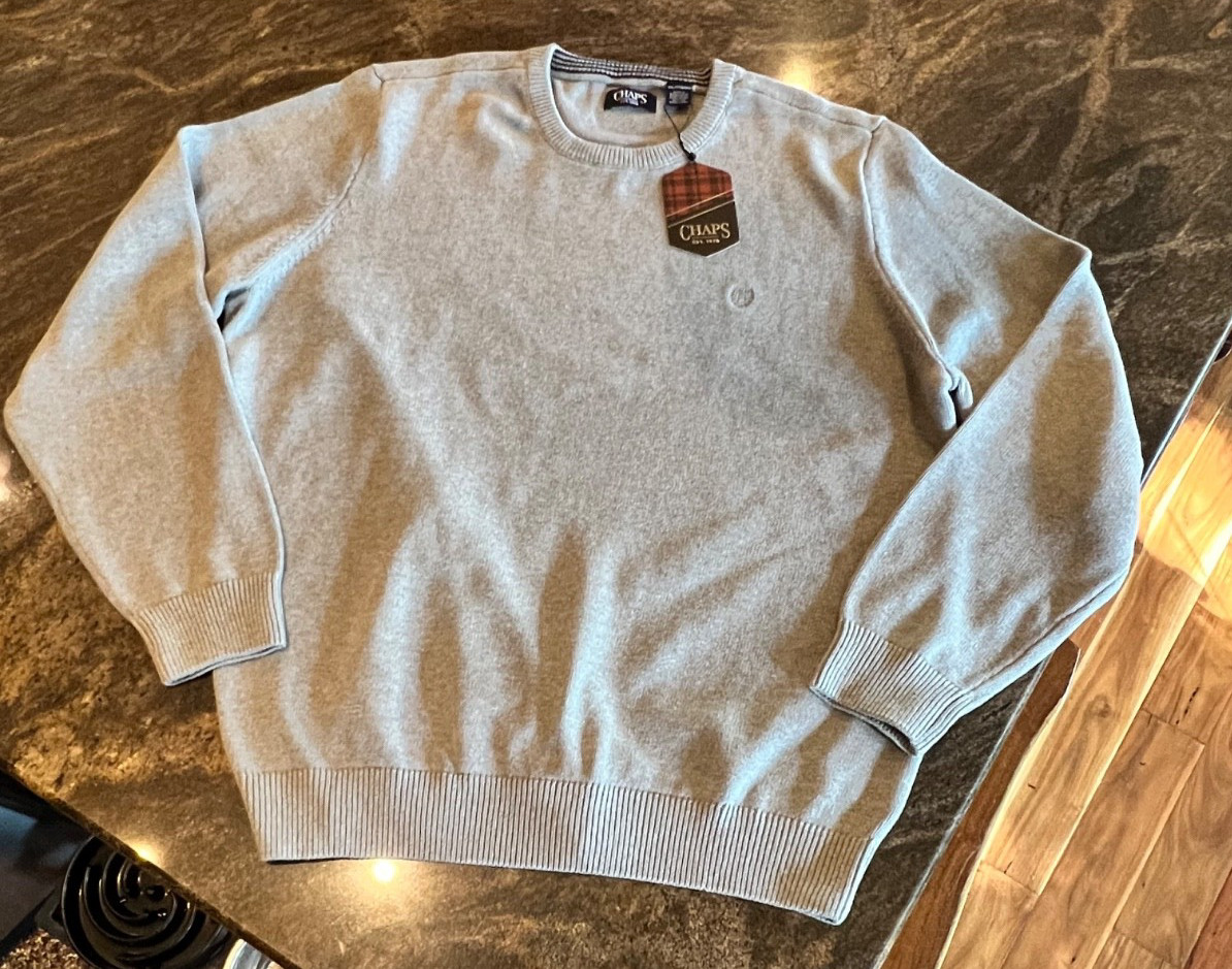 CHAPS Big Men's Solid 100 Cotton Crewneck Sweater SZ 2XL Light Grey Heather NWT