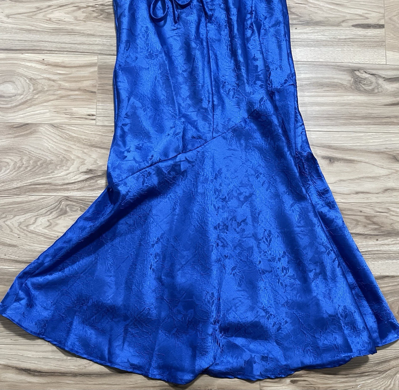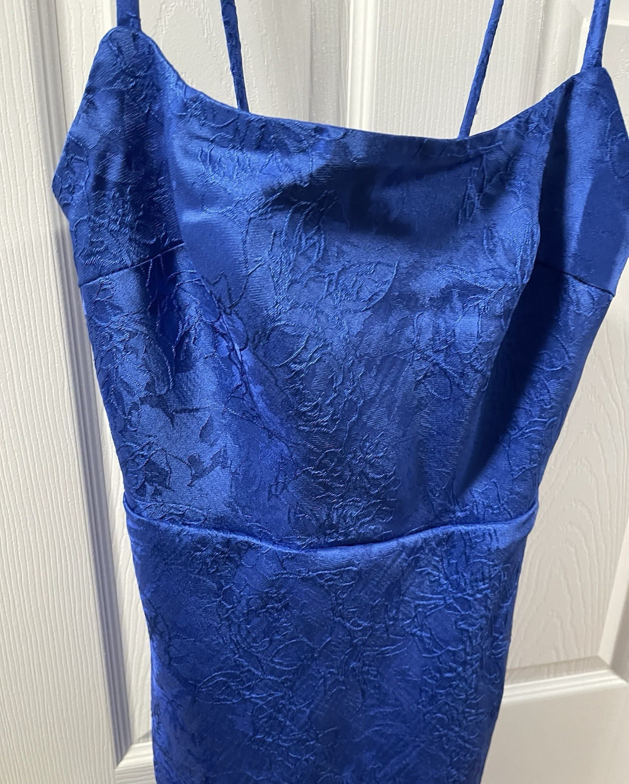 как выглядит Eightale Satin Long Prom Dress Floral Jacquard Mermaid Blue Backless фото