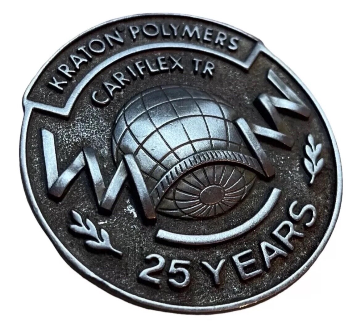 Kraton Polymers Belt Buckle Cariflex 25 Yr Service Metal Collectible Worker
