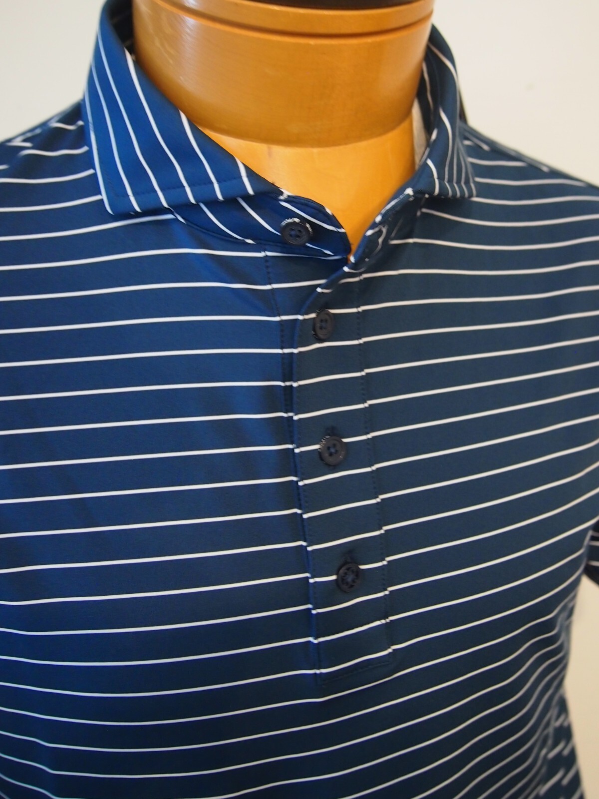 G/FORE Performance Fabric Navy Blue Stripe Slim Fit Polo Shirt NWT M 120