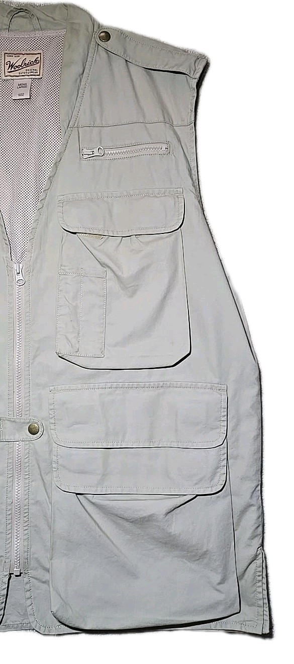 как выглядит Vintage Woolrich Mens Khaki Outdoor Wear Vest. Made In Macau. Size Large. фото