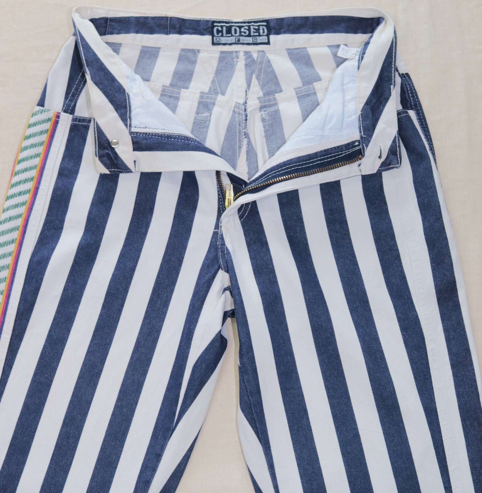 Vintage 80s Blue/White Striped Cotton Pants CLOSED MARITHE FRANCOIS GIRBAUD W28