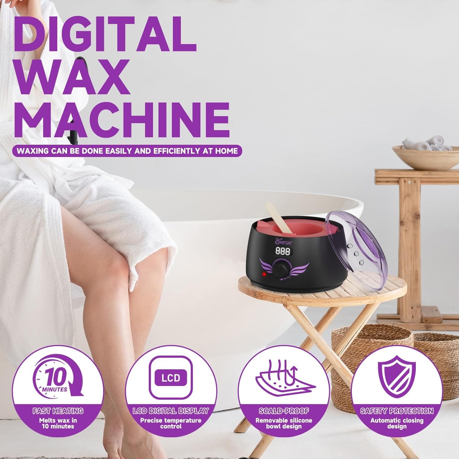 Waxing kit for women, Digital Hard Wax Warmer with 4 Packs of Natural Black
