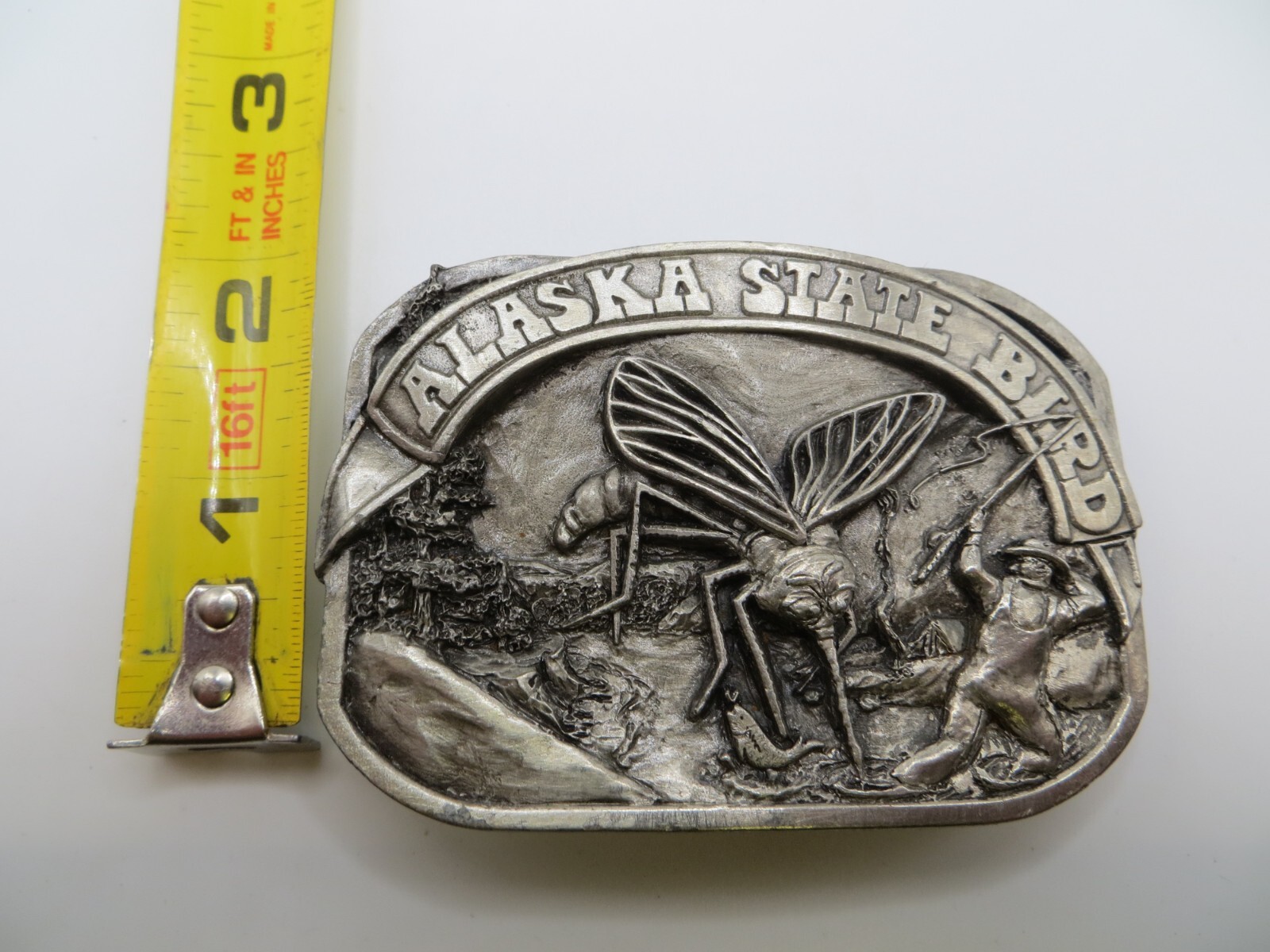 как выглядит BELT BUCKLE Alaska State Bird Giant Mosquito 1983 Model JH 110 фото