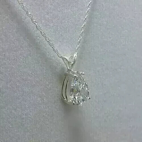 1.50Ct Pear Cut Lab Created Diamond 18k White Gold Plated Solitaire Pendant