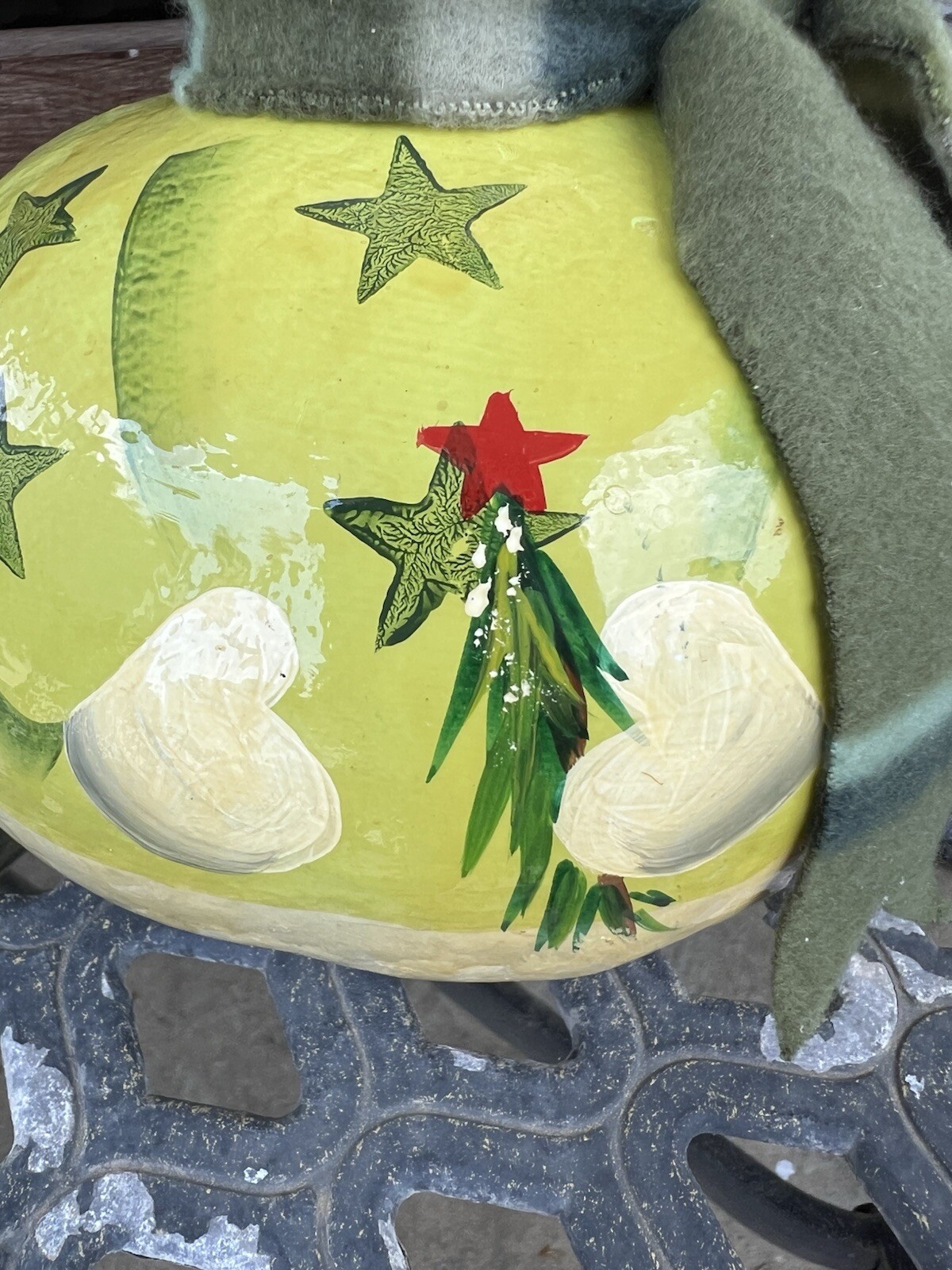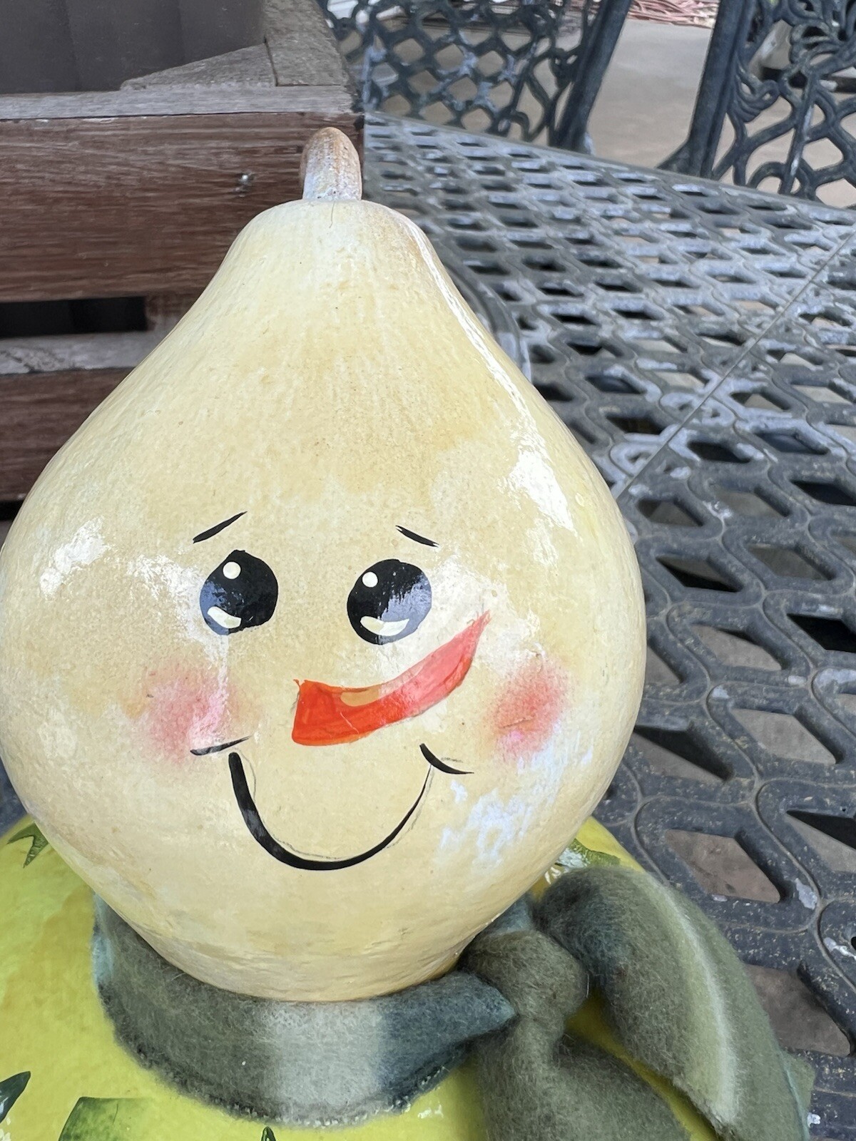 как выглядит Hand Painted Gourd Snowman Holiday Figurine w/ Scarf Hand Crafted Glossy Signed фото