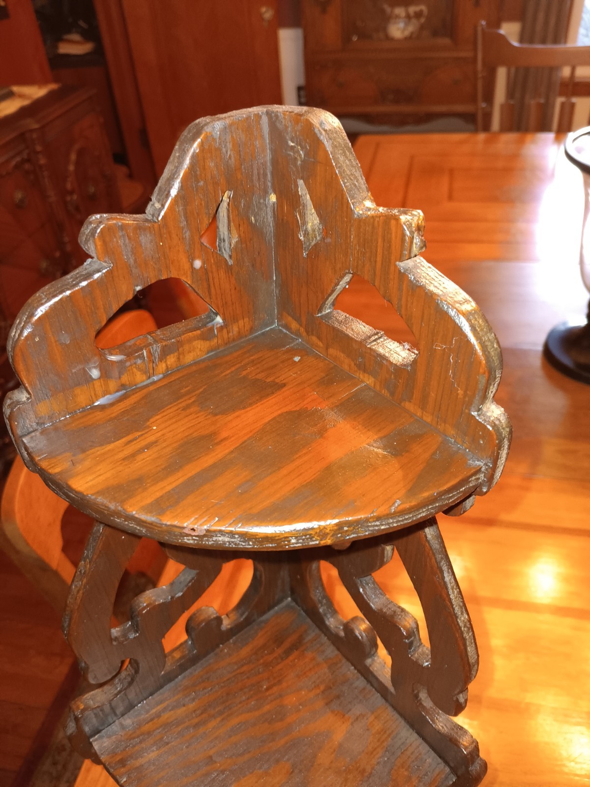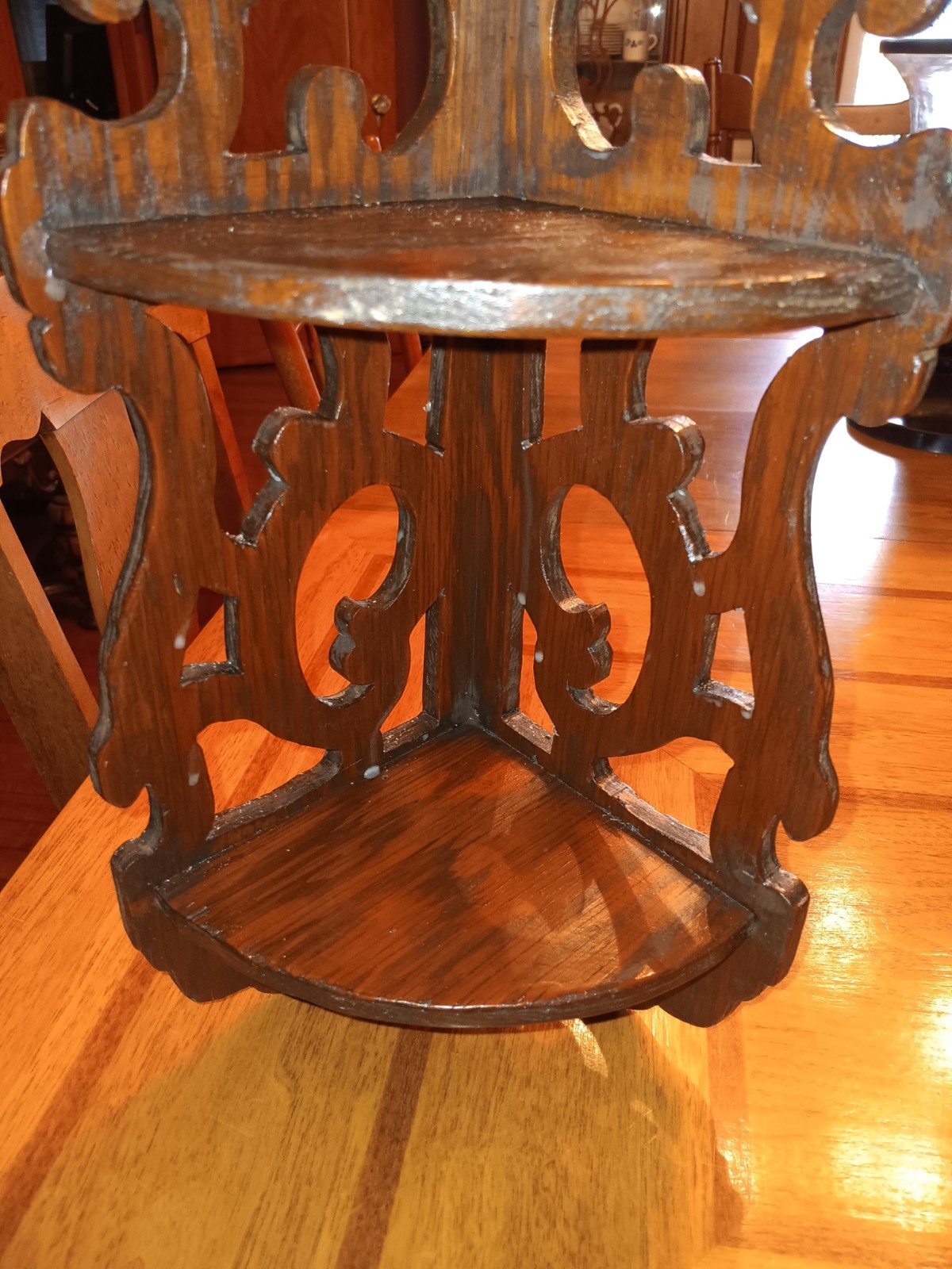 как выглядит Victorian Fretwork Wood 3 Shelf Corner Shelf Vintage фото