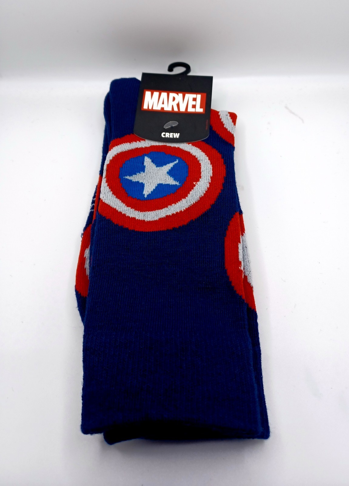 Marvel Captain America Shield Repeat Print Navy Crew Socks Size 10-13
