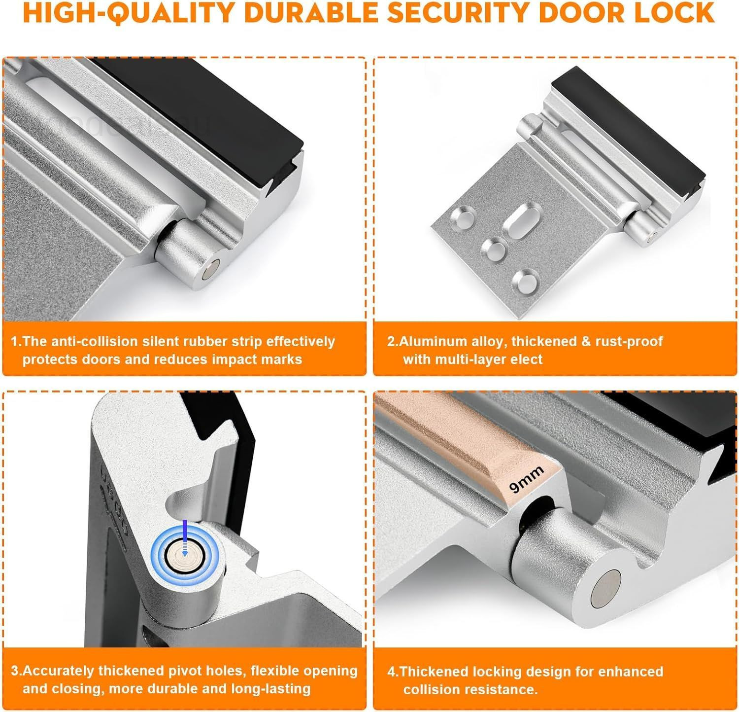 Home Security Door Reinforcement Lock, Upgraded Front Locks for Silver