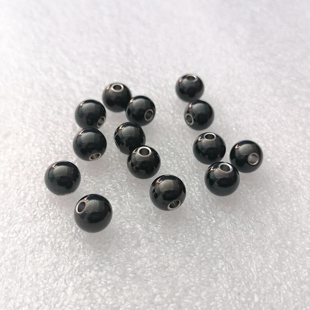 40pc Black Big 8mm Round Loose Beads Hole 2mm Stainless Steel Jewelry Making DIY