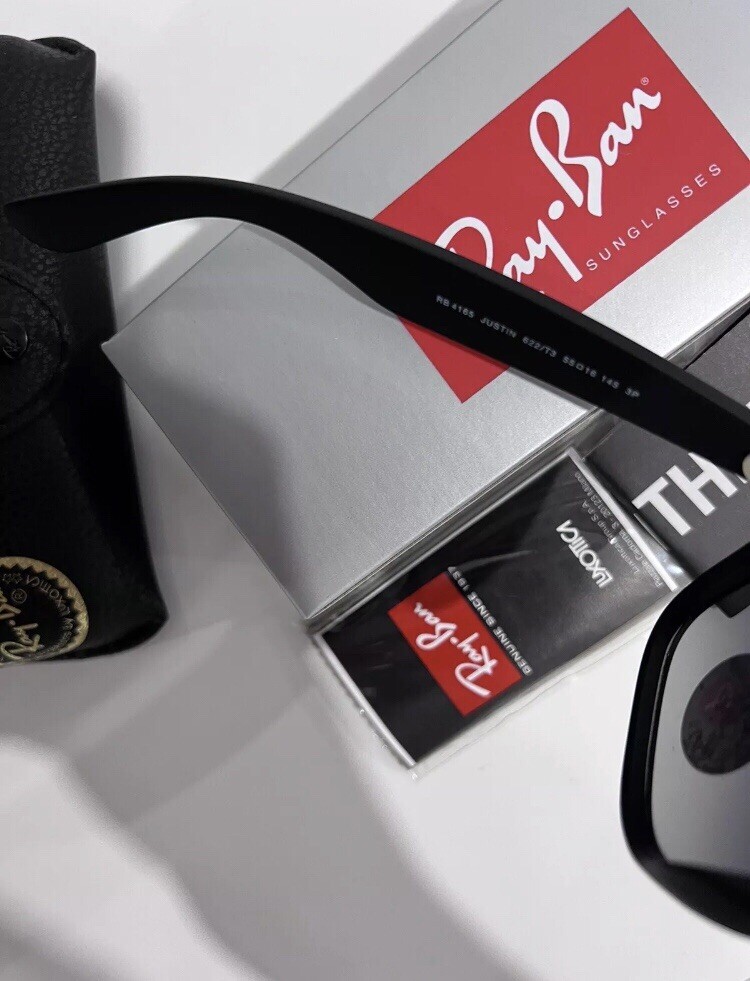 как выглядит New Ray-Ban Justin RB4165 Matte Black/ Gradient Grey 54mm Sunglasses фото