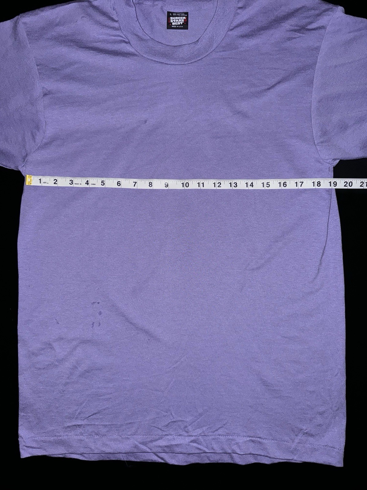 как выглядит Vintage NOS Blank Large Lavender Screen Stars Best, Single Stitch Made in USA. фото