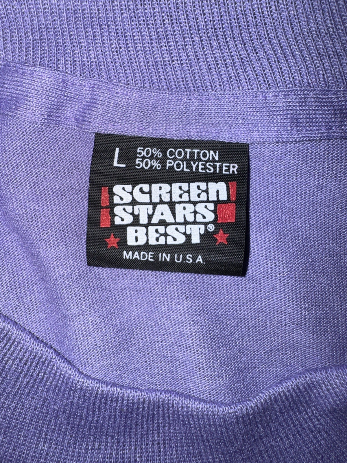 Vintage NOS Blank Large Lavender Screen Stars Best, Single Stitch Made in USA.