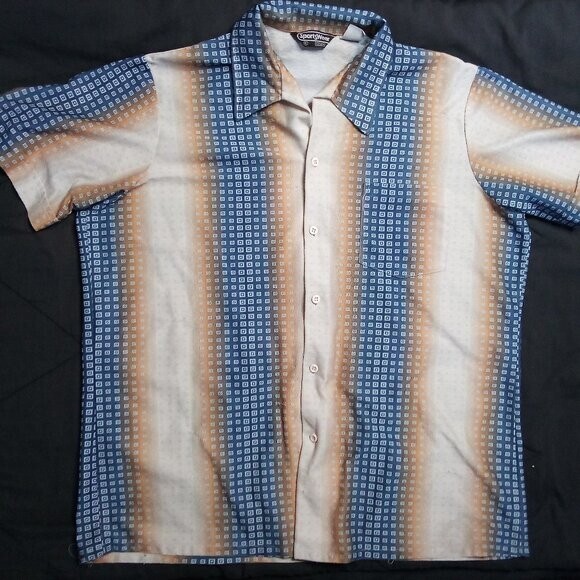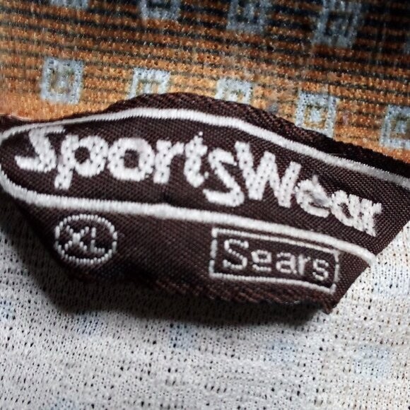 как выглядит Vintage Sears Sportswear Geometric Op Art Polyester Disco Shirt фото