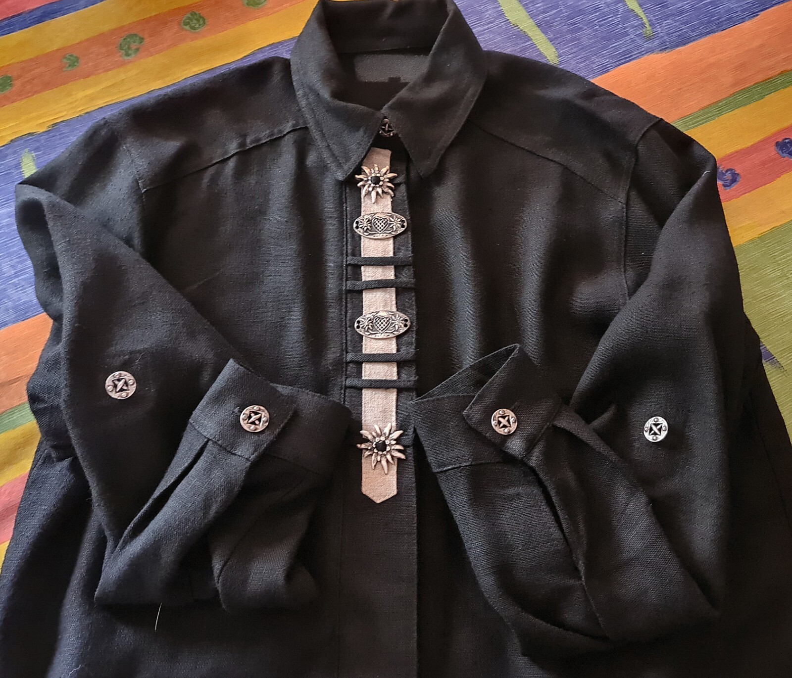 BLOUSE VINTAGE TRACHTEN OKTOBERFEST DIRNDL TYROL BLACK LINEN WOMEN :US16/EU44