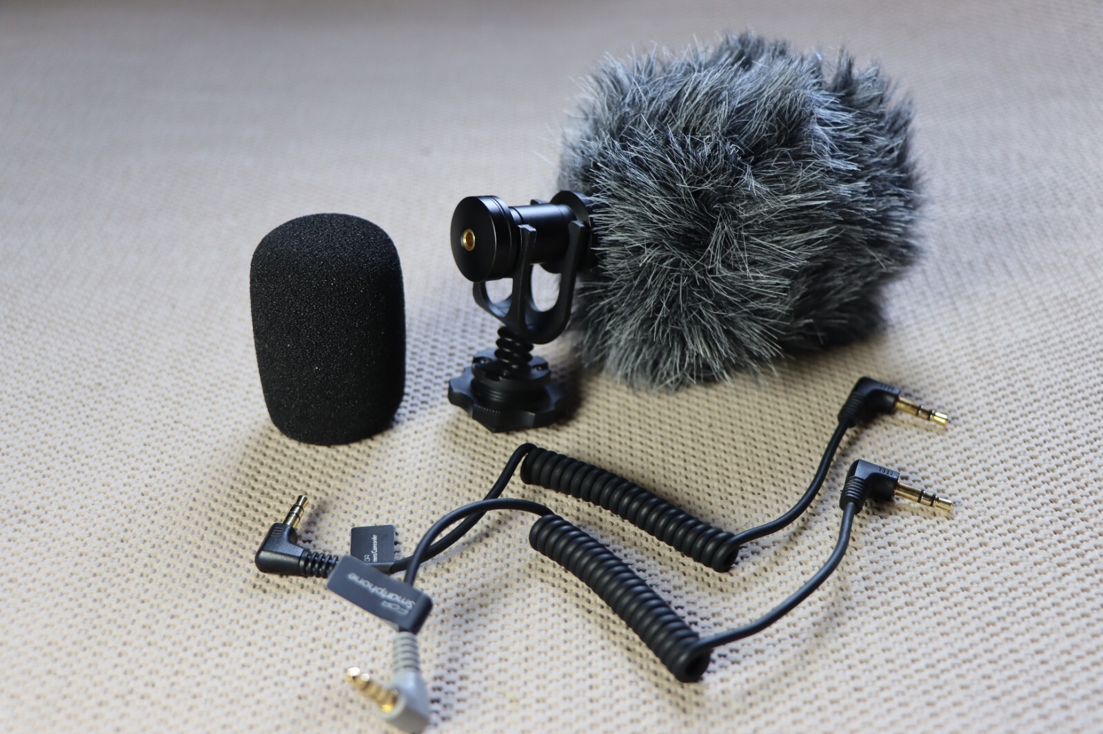 Universal Video Microphone with Wind Muffs smartphone adapter. Cloth Case